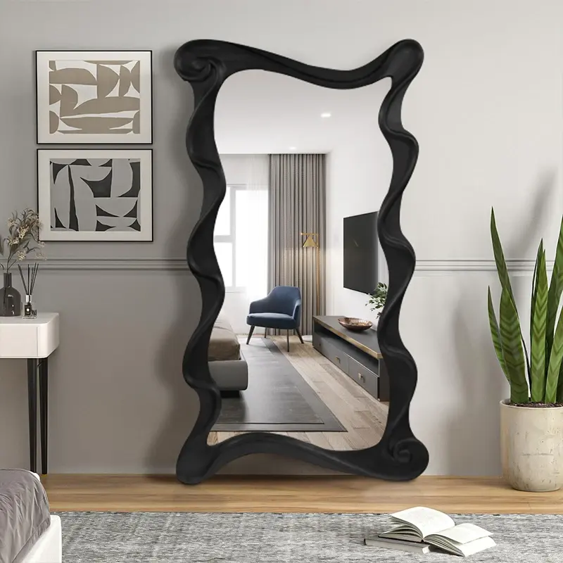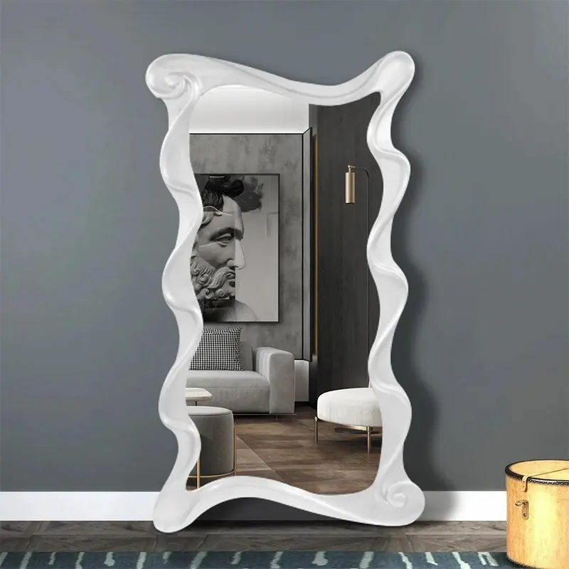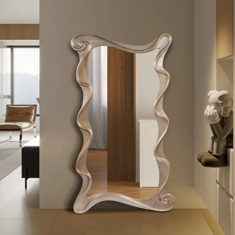 Espejo francés anormal Marco vintage Ondulado Funky Espejo estético Diseño irregular Vestidor Spiegels Decoraciones para el salón