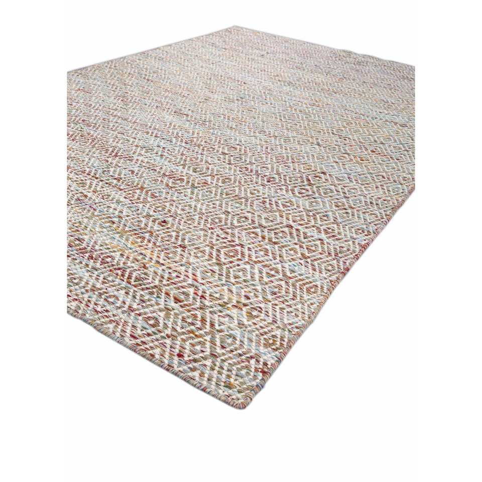 Alfombras Abrash Adwv-13047 de Tejido Plano con Patrón Geométrico en Lana y Viscosa, Color Rosa y Morado, para Uso Doméstico