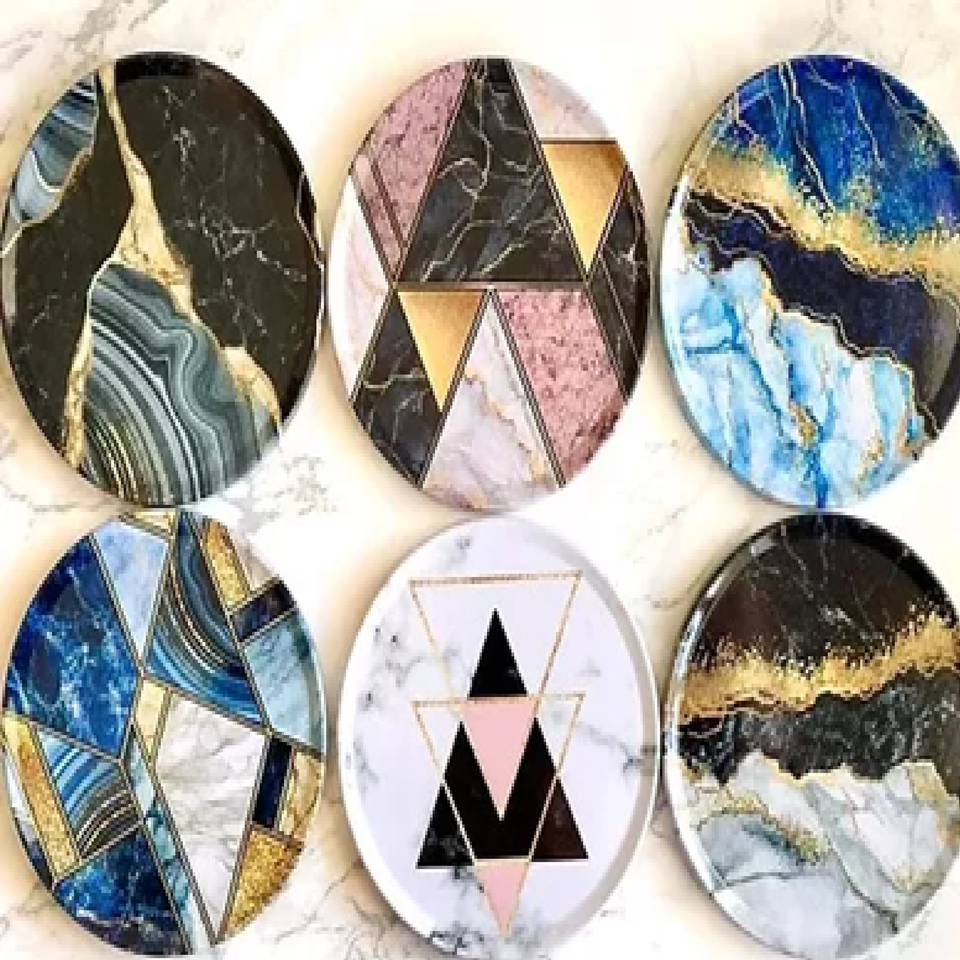 Posavasos Redondos Modernos de Mármol Natural y Madera, Absorbentes, Antideslizantes y Ecológicos, para Hogar, Oficina y Hotel, Diseño Artesanal
