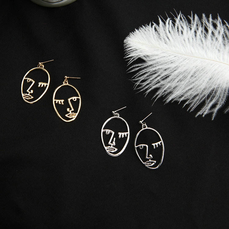 Nombre:Arte abstracto gota declaración oro Picasso cara alambre pendientes para las mujeres