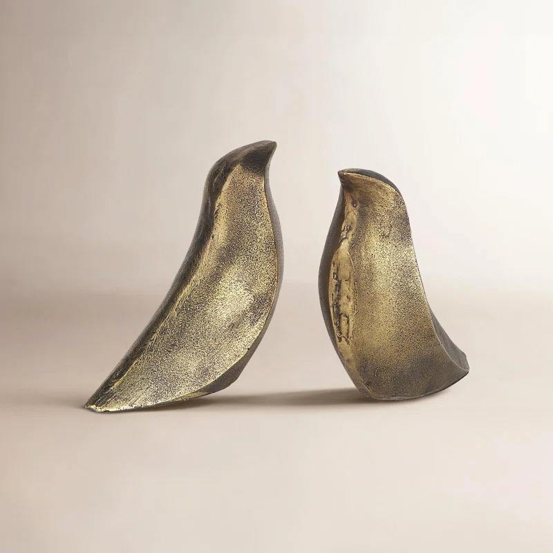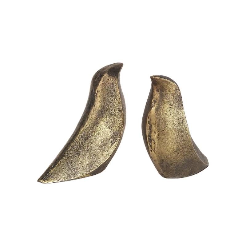 Juego de sujetalibros escultóricos abstractos de estilo moderno de mediados de siglo, acabado en latón antiguo, decoración del hogar, artesanía de metal de aluminio pesado, multipieza