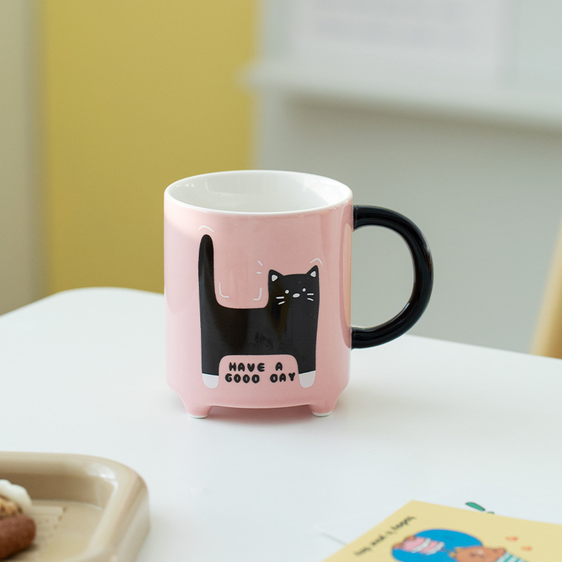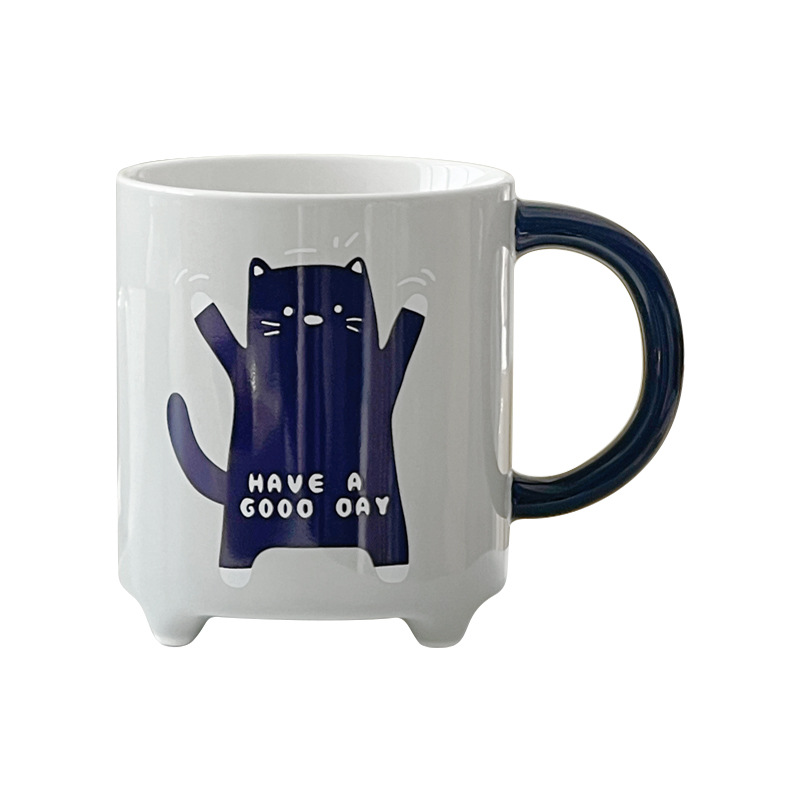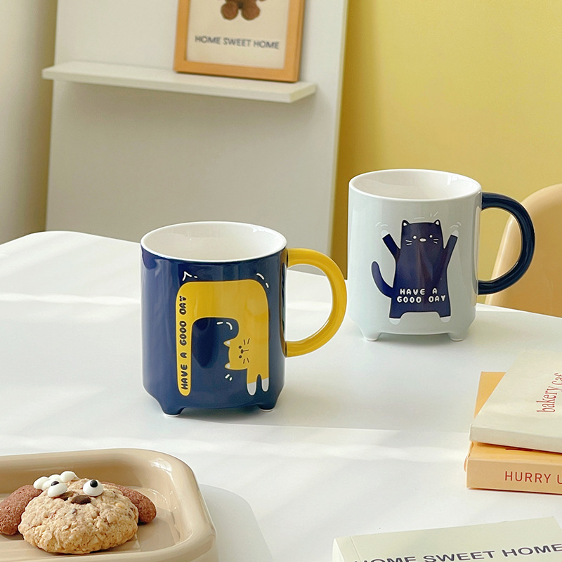 Taza de Café de Cerámica con Diseño de Gato de Dibujos Animados Abstracto, con Tapa y Cuchara, 310 ml, Apta para Lavavajillas y Microondas, para Fiestas, Hogar y Oficina