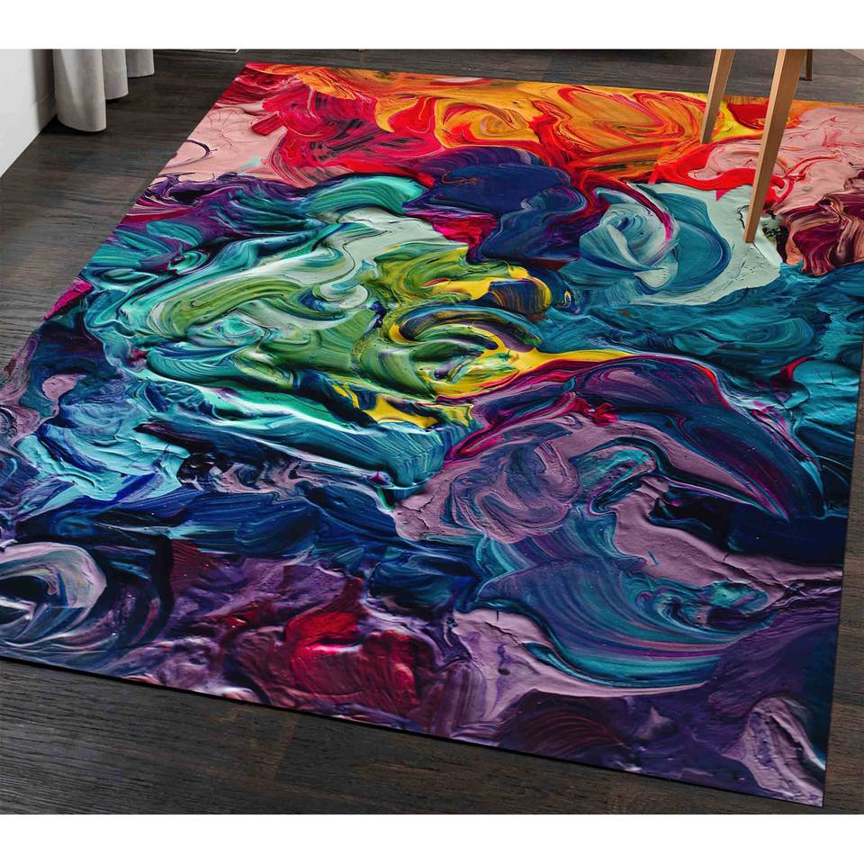 Alfombra Abstracta Colorida: Arte Moderno, Alfombra Antideslizante, Alfombra Suave No Tejida