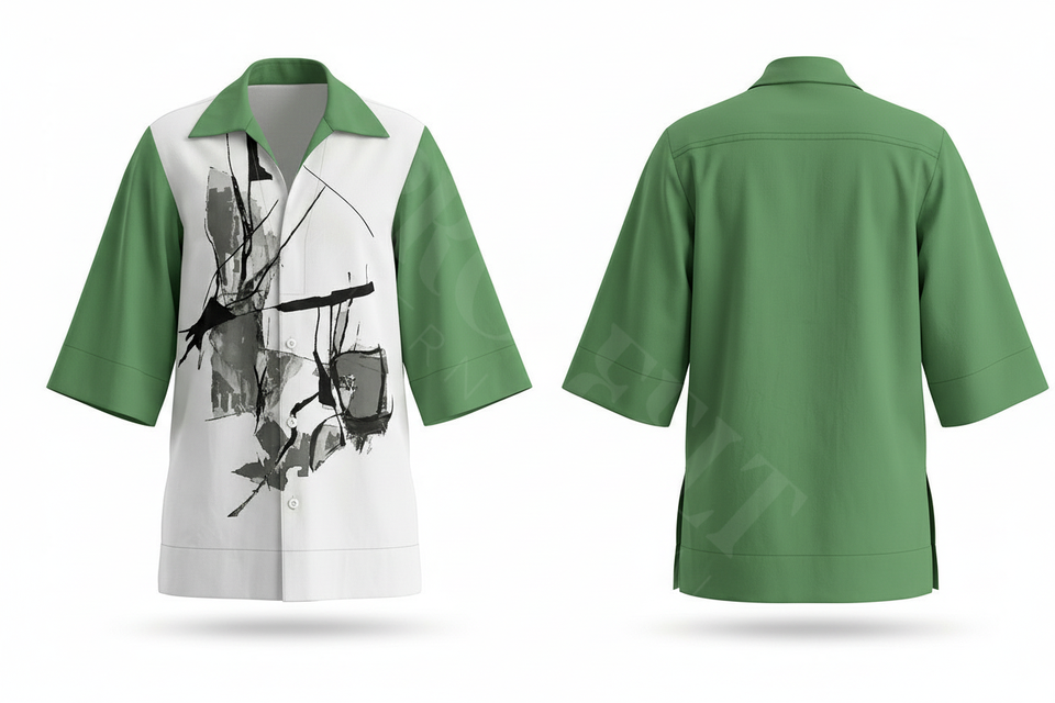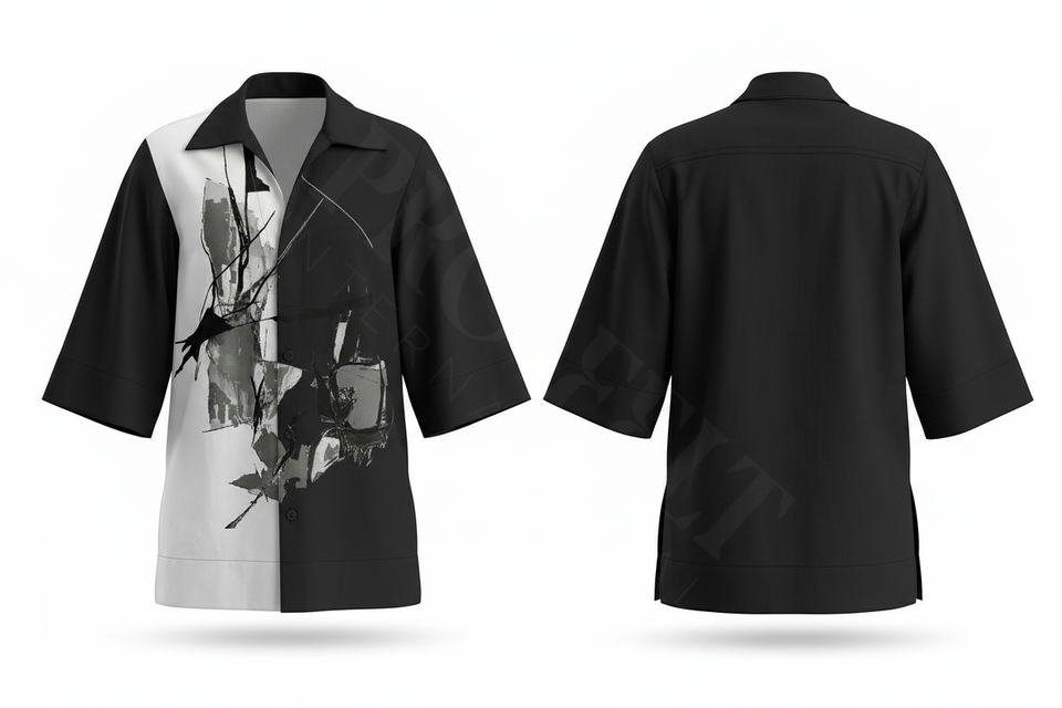 Camisa de Vestir con Estampado Gráfico Personalizado Abstracto, Corte Holgado, Mangas Cortas, Estilo Casual, Camisas Elegantes OEM ODM