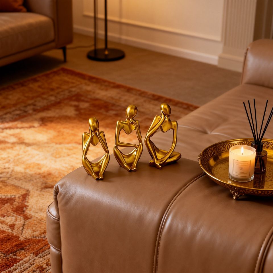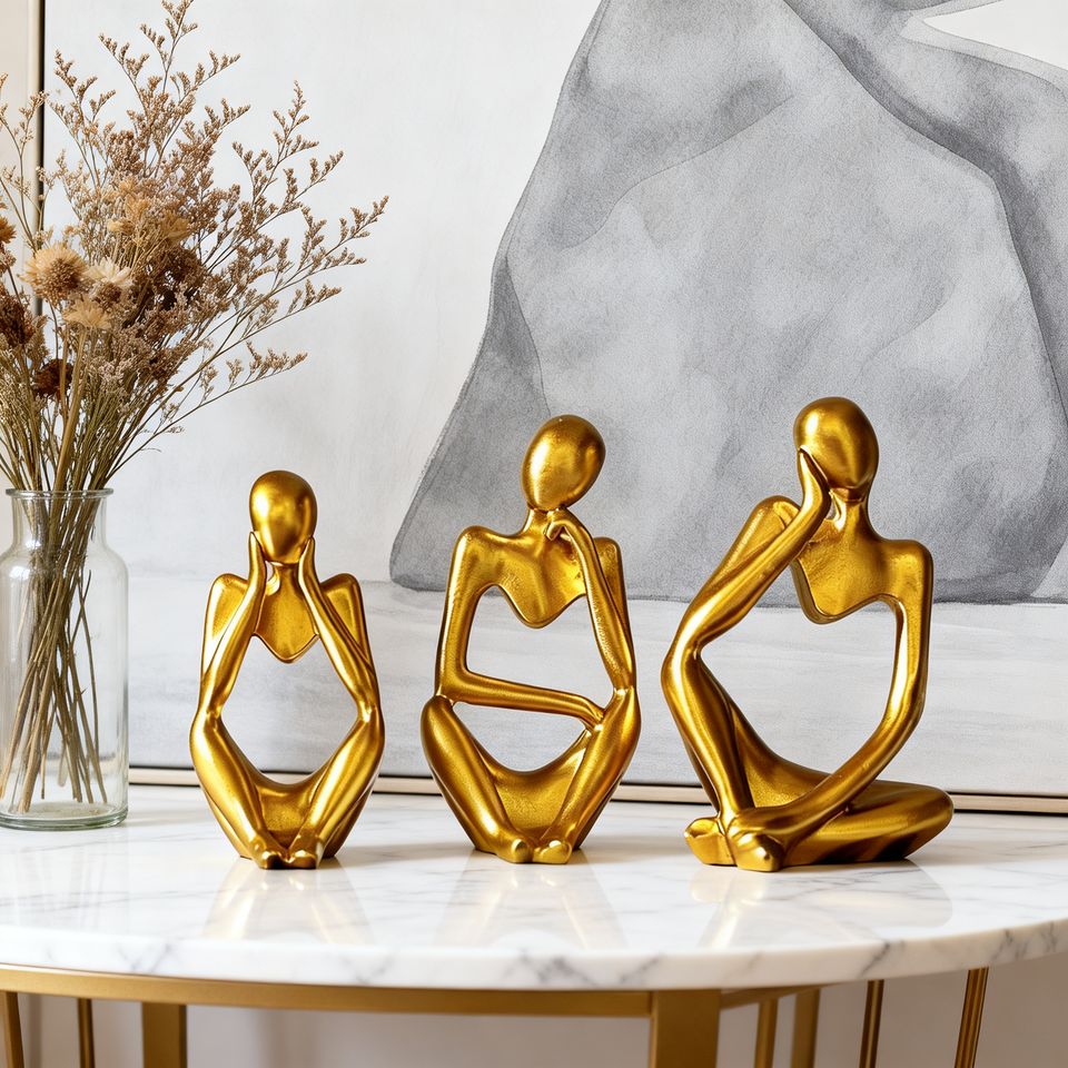 Conjunto de Esculturas de Resina Abstractas del Pensador Dorado - Adorno Moderno para Escritorio, Sala de Estar, Entrada, Mueble de TV, Estante para Vinos, Hogar