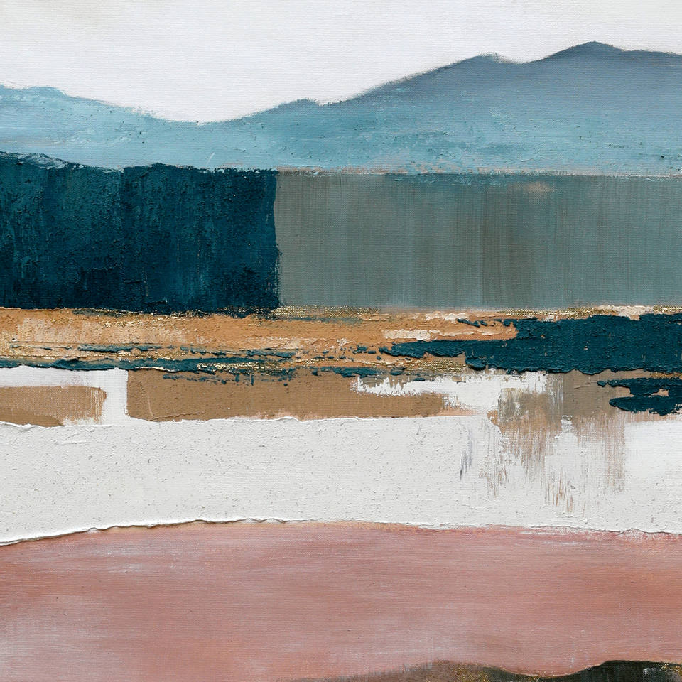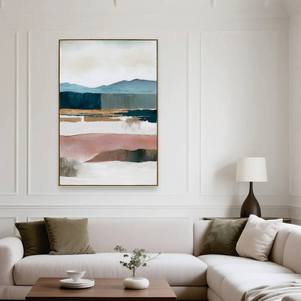 Arte Abstracto en Lienzo de Paisaje, Pintura de Montaña y Horizonte en Capas Multicolores para Decoración de Sala de Estar