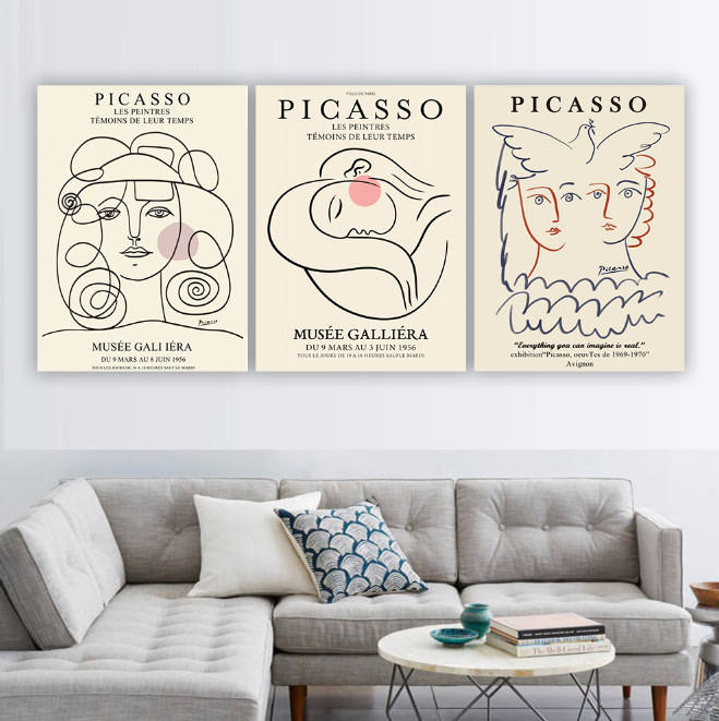 Diseño:Cuadro en lienzo para sala de estar, pósteres inspirados en Picasso