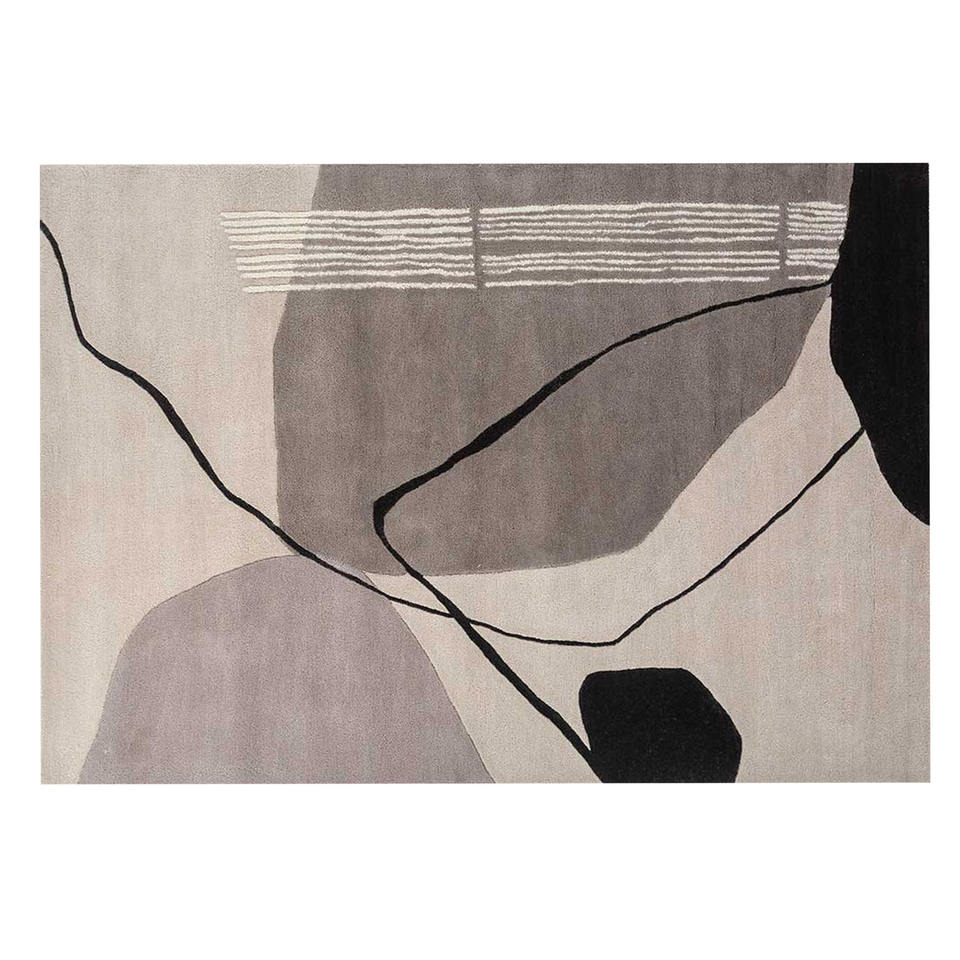 Alfombra de lana moderna abstracta hecha a mano gris beige negro alfombra con mechones Viernes Negro regalo de Navidad