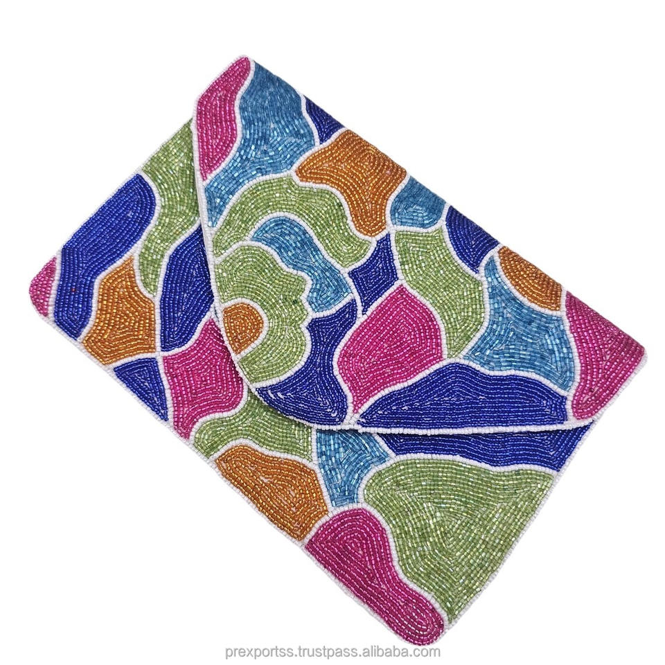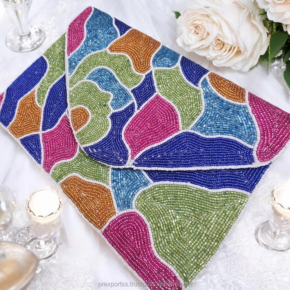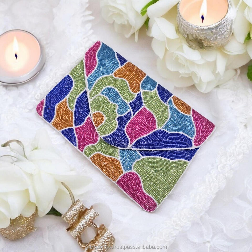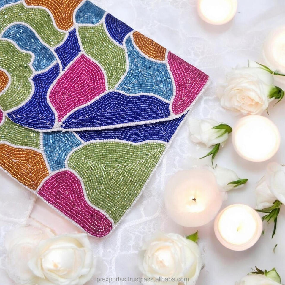 Bolso de mano de lujo con patrón abstracto, hecho a mano, con perlas y bordados, para noche, novia, boda, fiesta, diseño personalizado, botón de moda