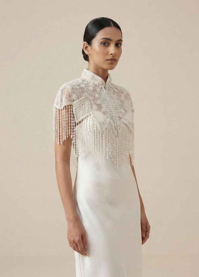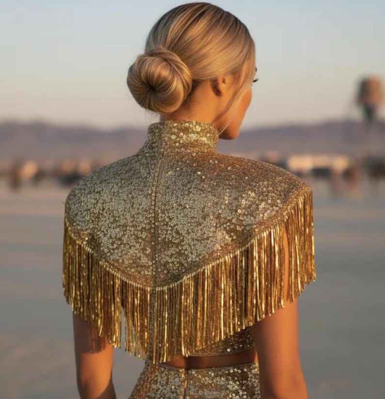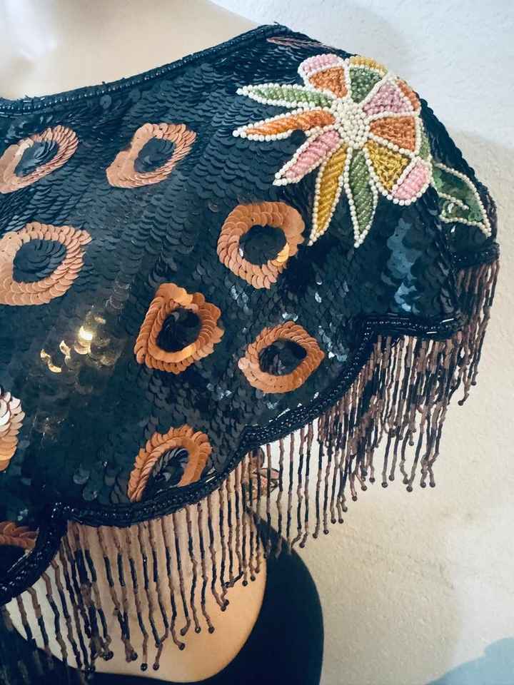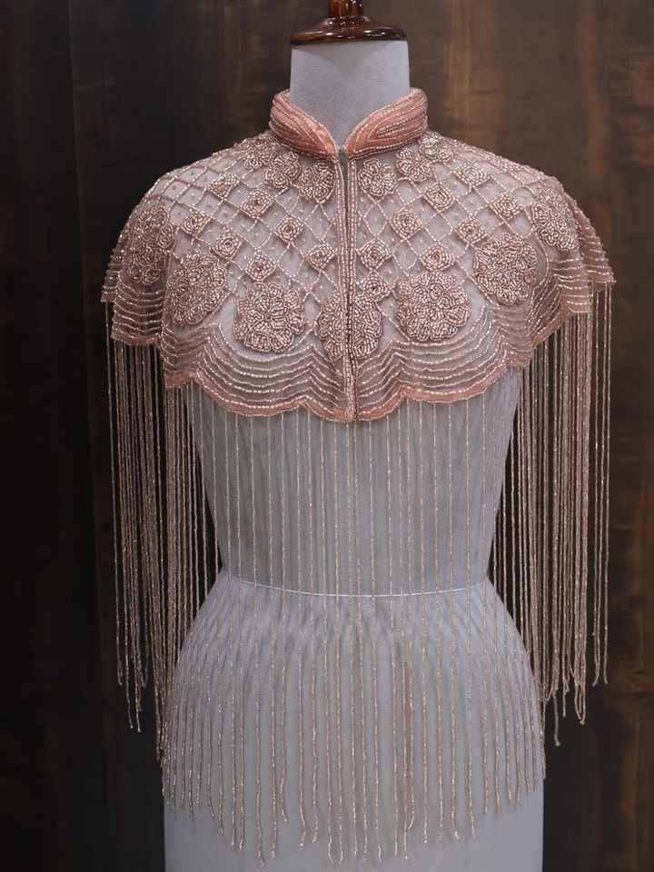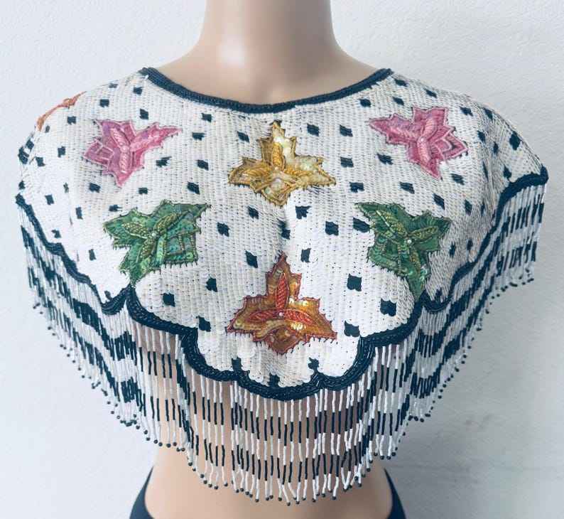 Top Corto Abstracto Tridimensional con Adornos de Mariposas y Flecos de Cuentas, con Forma de Alambre de Acero