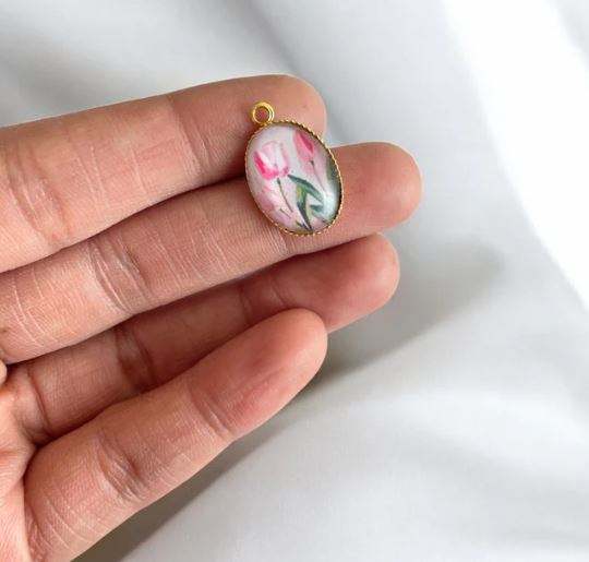 Tulipanes abstractos Porcelana fría Colgante redondo Material de resina Componentes de joyería sin cadena por Clart Tools