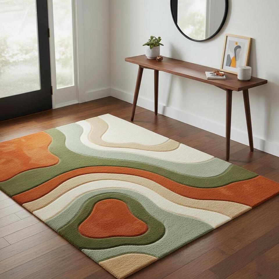Alfombra Moderna con Diseño de Ondas Abstractas en Tonos Tierra, Alfombra Anudada a Mano para Sala de Estar, Dormitorio, Alfombra Decorativa Suave y Afelpada para el Hogar