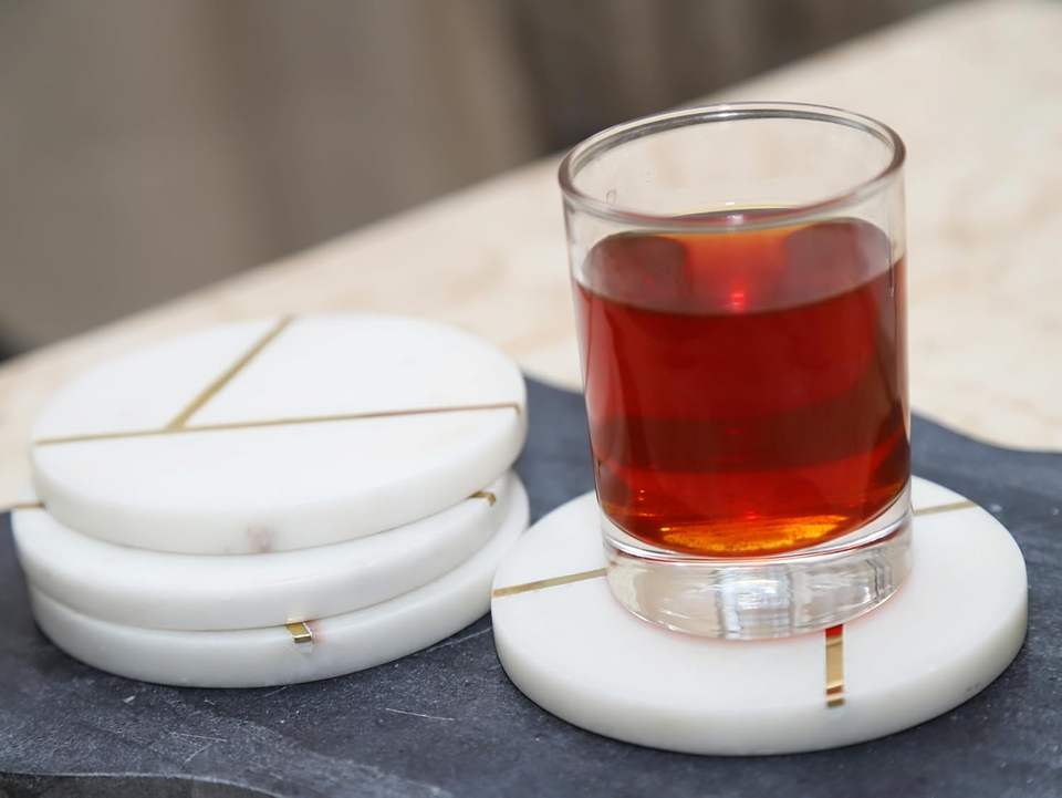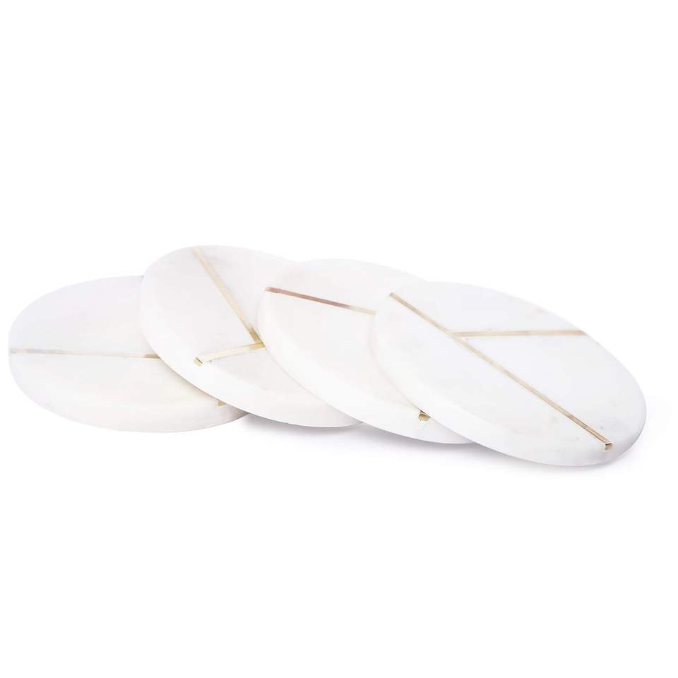 Posavasos Redondos de Mármol Blanco Abstracto, Posavasos de Piedra Natural Hechos a Mano para Mesa