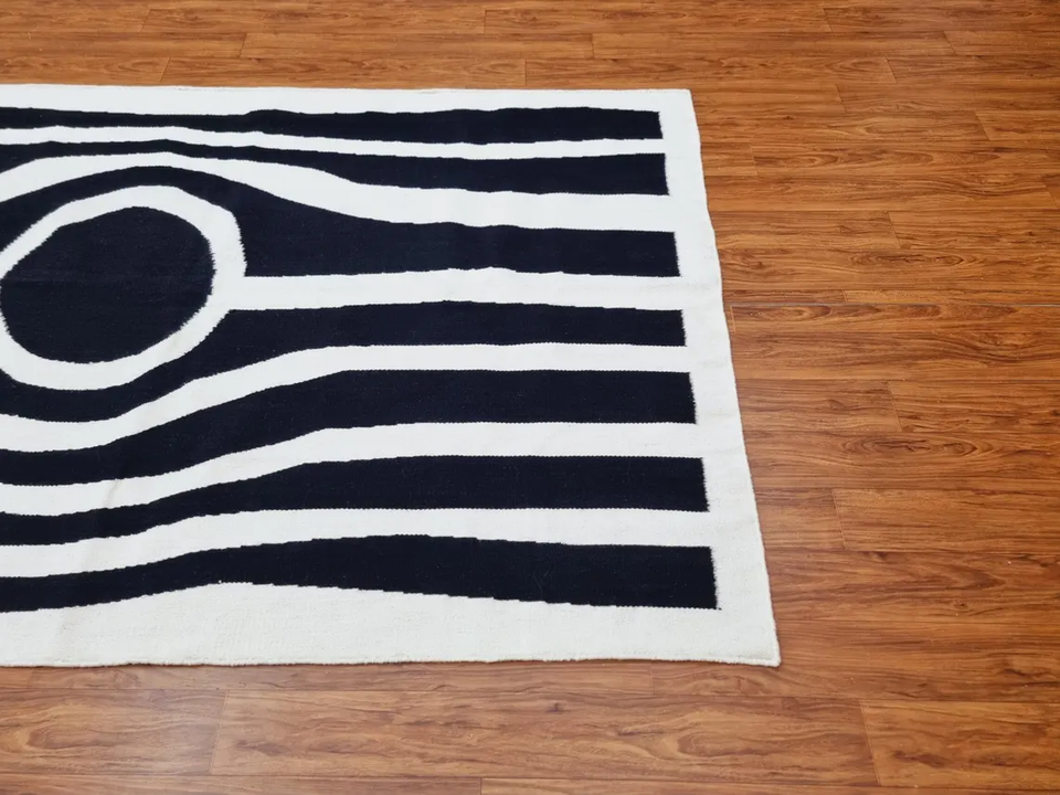 Alfombra Kilim de lana abstracta Alfombra Kilim tejida a mano Alfombra marroquí blanca y negra