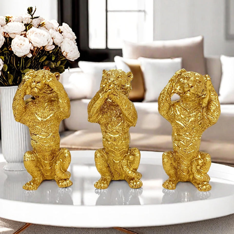 Figura Decorativa de Arte Popular Esculpida en Resina Epoxi con Diseño Abstracto de León y Tigre para Oficina, Escritorio, Hogar y Artesanía con Vino