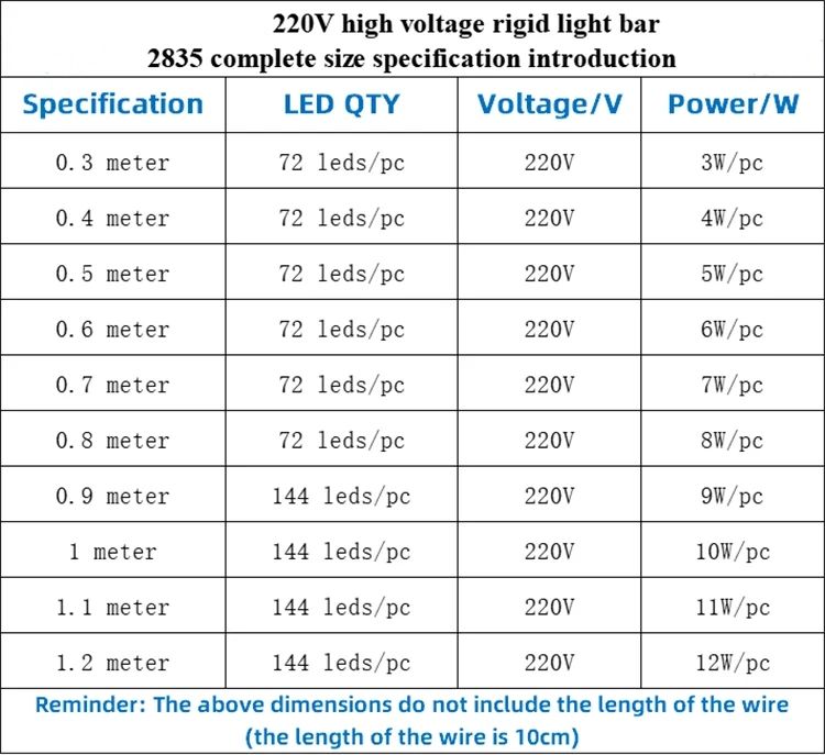 Nombre del elemento:Luz de barra de tira dura de 220V /110V 2835 LED