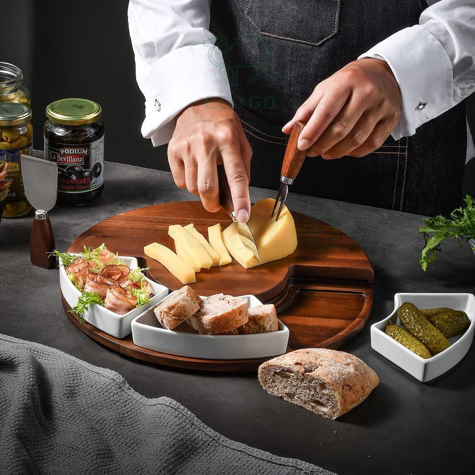 product:wood cheese board set with knives