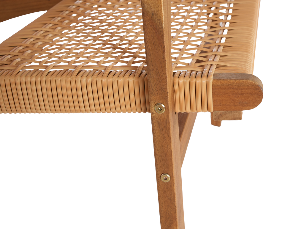 Banco de 2 plazas de ratán de madera de acacia | Respaldo de mimbre tejido a mano | Estilo patio exterior de mediados de siglo | Fabricante de Vietnam
