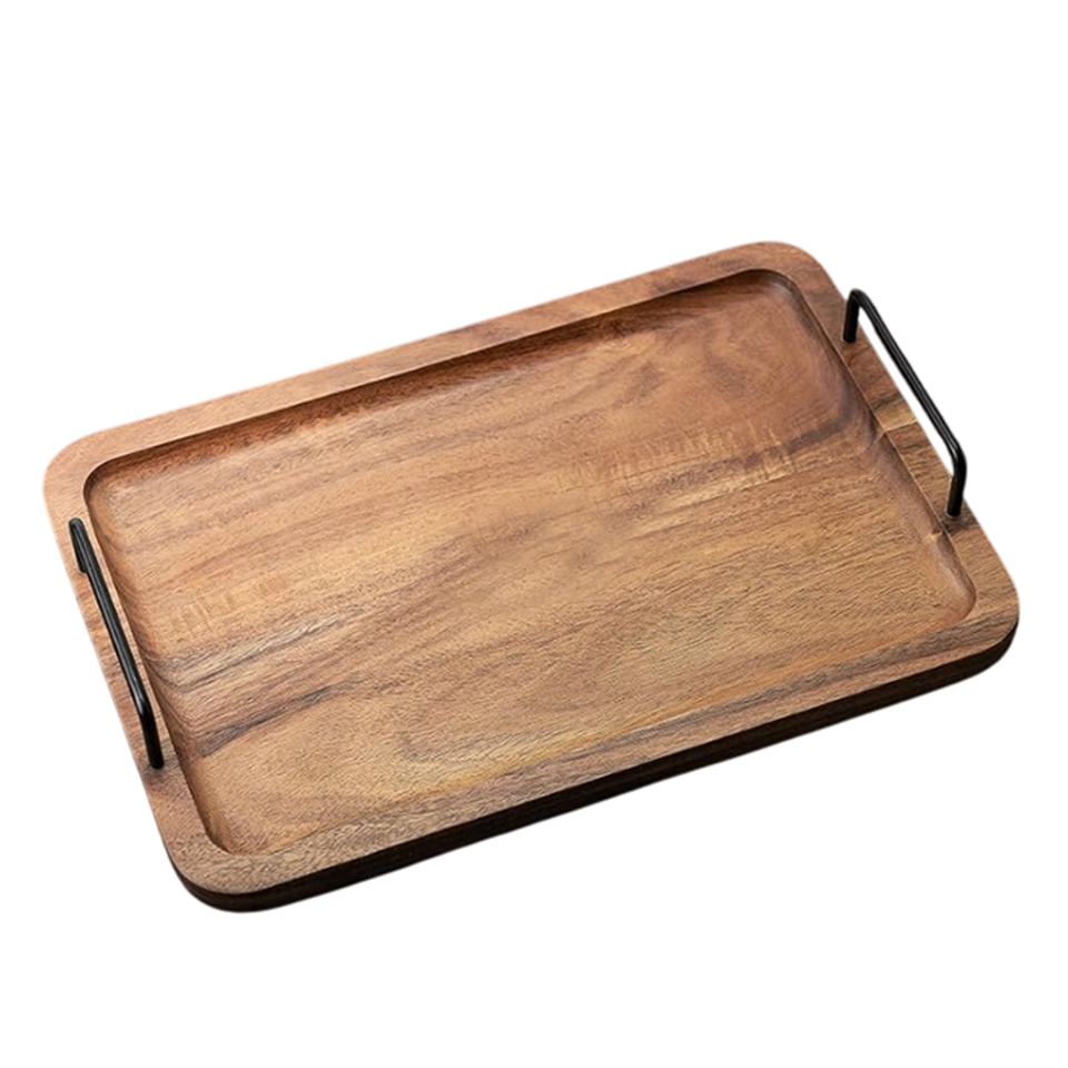 Bandeja rectangular de madera de acacia con asa, plato de comida para servir con diseño elegante para cafetería, restaurante o cocina casera