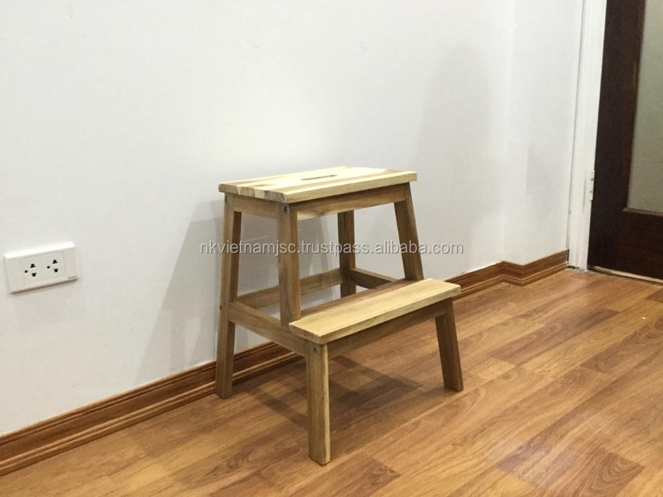 Taburete Escalera de Madera de Acacia con Orificio para Transportar, para Sala de Estar y Cocina