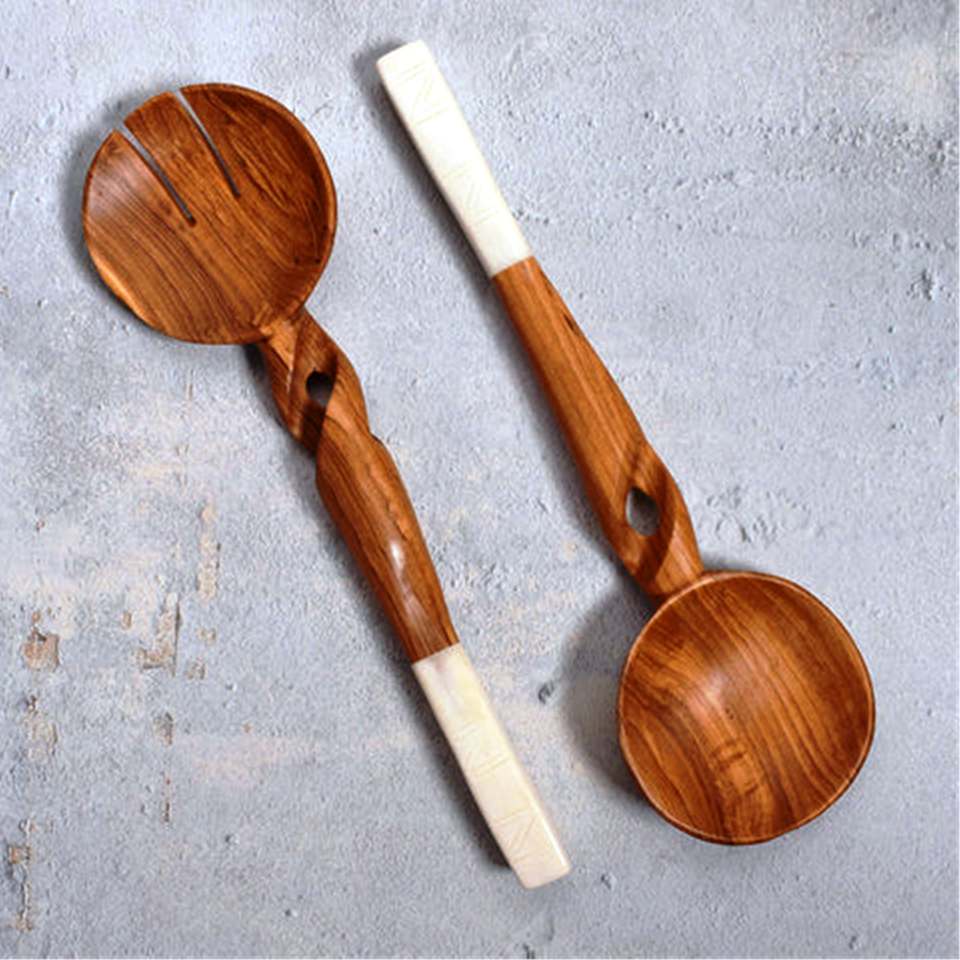 Juego de utensilios de madera de acacia de 4 servidores de ensalada de madera de mango Juego de 2 SERVIDORES DE ENSALADA DE MADERA JUEGO DE 2 HECHO A MANO ÚNICO KETCHENWAR