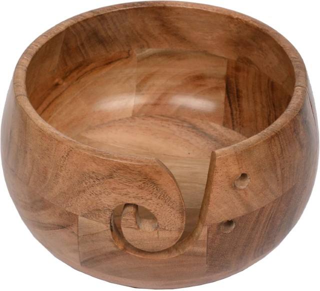 Tazón de hilo de madera de acacia y mango, soporte de hilo de madera hecho a mano con recorte de remolino, evita enredos perfectos