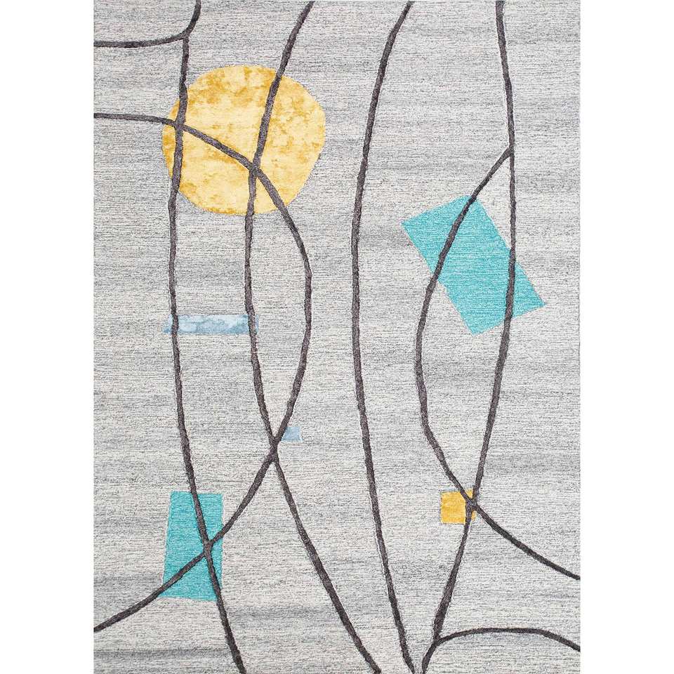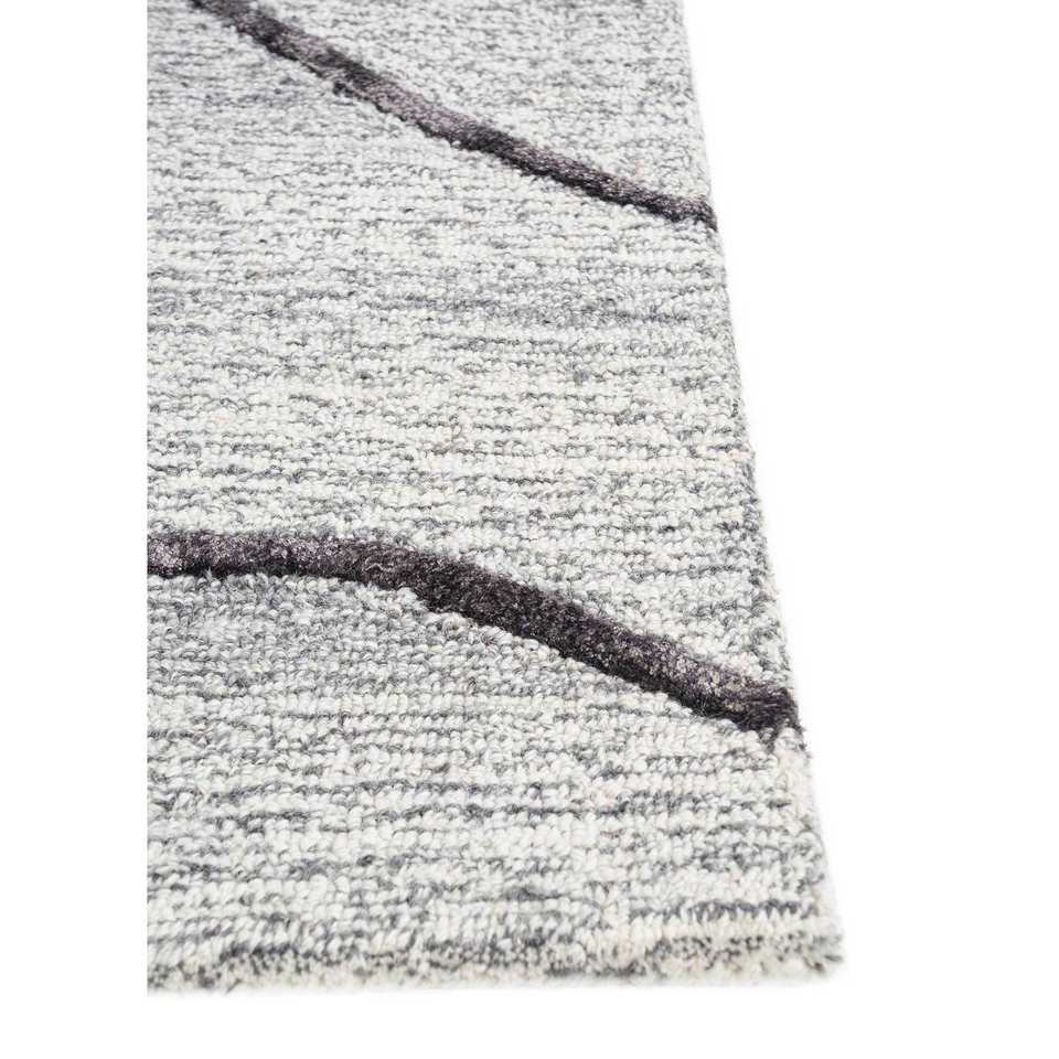 Alfombra de Lana y Viscosa Hecha a Mano Acar, Diseño Abstracto Gris y Negro, Rectangular con Rayas, 4m 10mm, para Sala de Estar o Pasillo