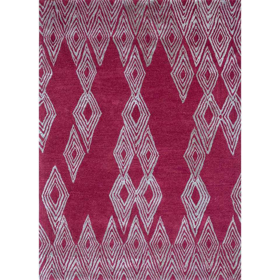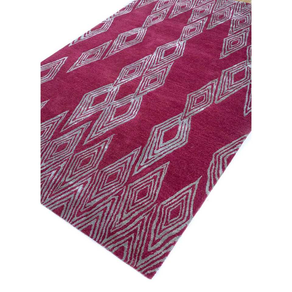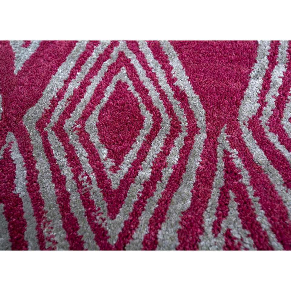 Alfombras de Lana y Viscosa Hechas a Mano Acar, Patrón Geométrico Rosa y Morado para Decoración de Sala de Estar, 4m, 10mm de Grosor-Tra-13487