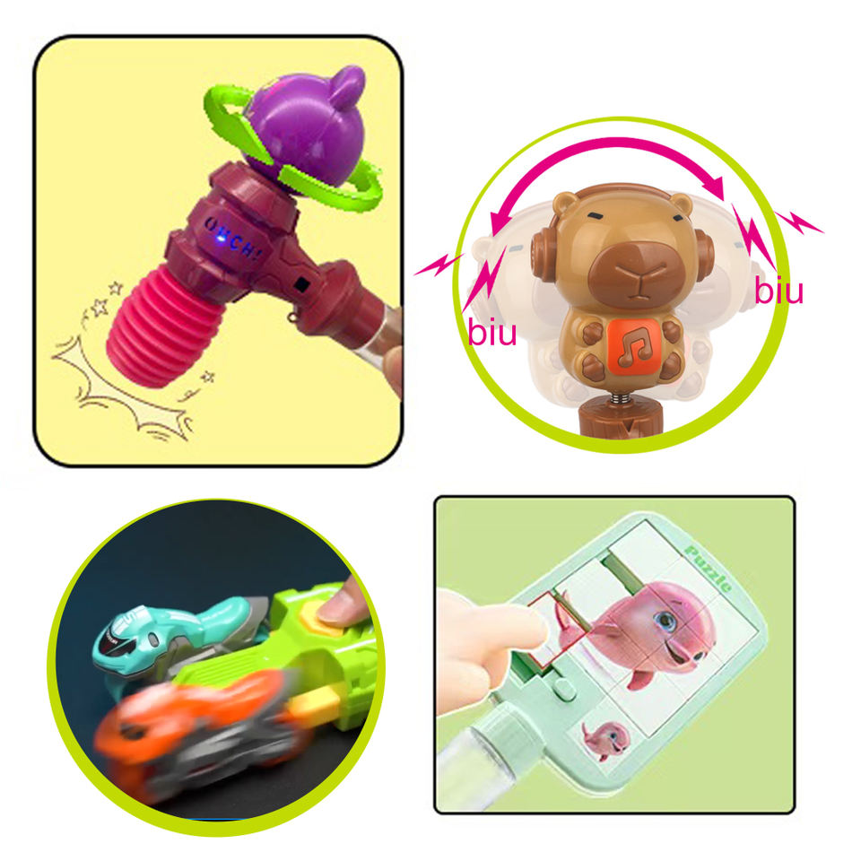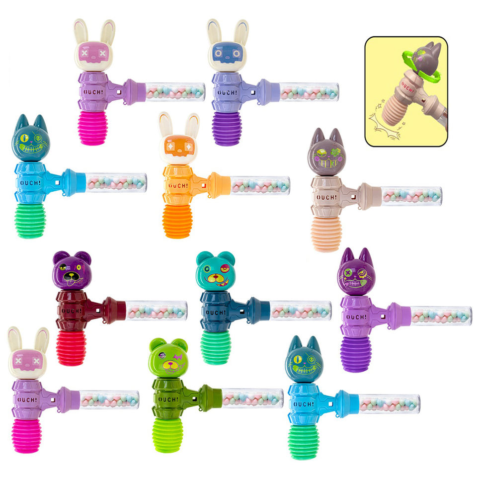 Paquete de Tubo Transparente personalizado, martillo iluminado, motocicleta, tobogán de plástico, rompecabezas, juguetes de dulces, dulces duros para niños