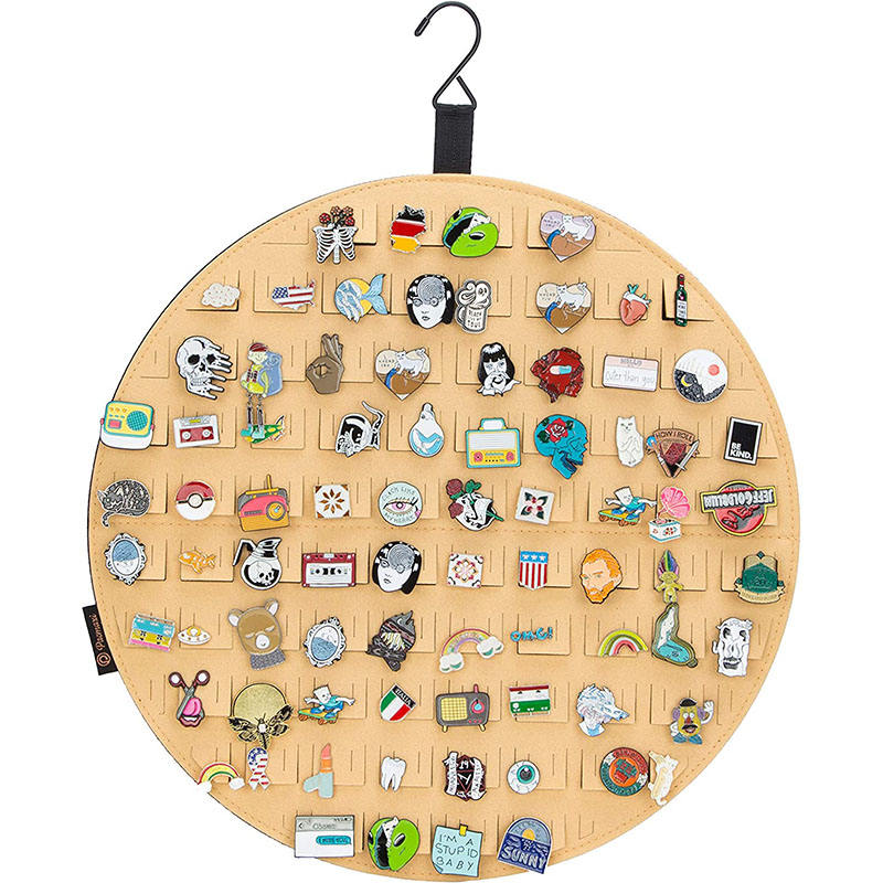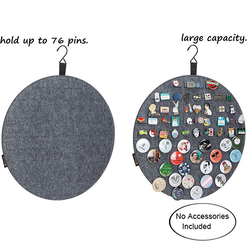 Organizador de Pared Redondo con Ganchos para Broches y Alfileres, Sistema de Fieltro Personalizable