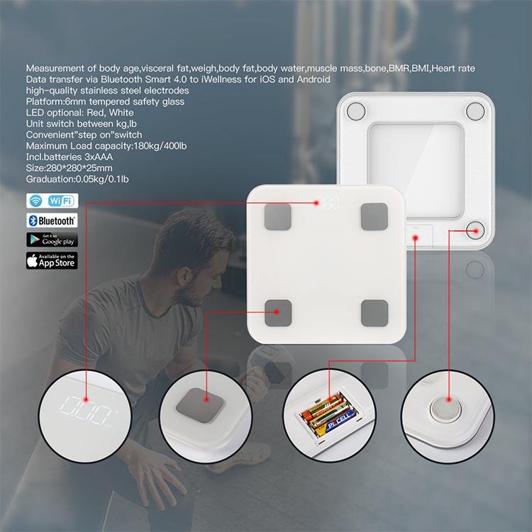 Característica:Negocios, Gran capacidad, Portátil, Aplicación inteligente, Peso Ligero, Bluetooth, Para Medir el Cuerpo, Escala LED, Báscula de pesaje, digital, imc inteligente