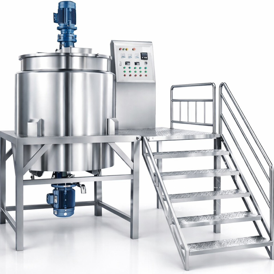 Tanque de acero inoxidable, motor, agitador, homogeneizador, boca de hombre, etc.