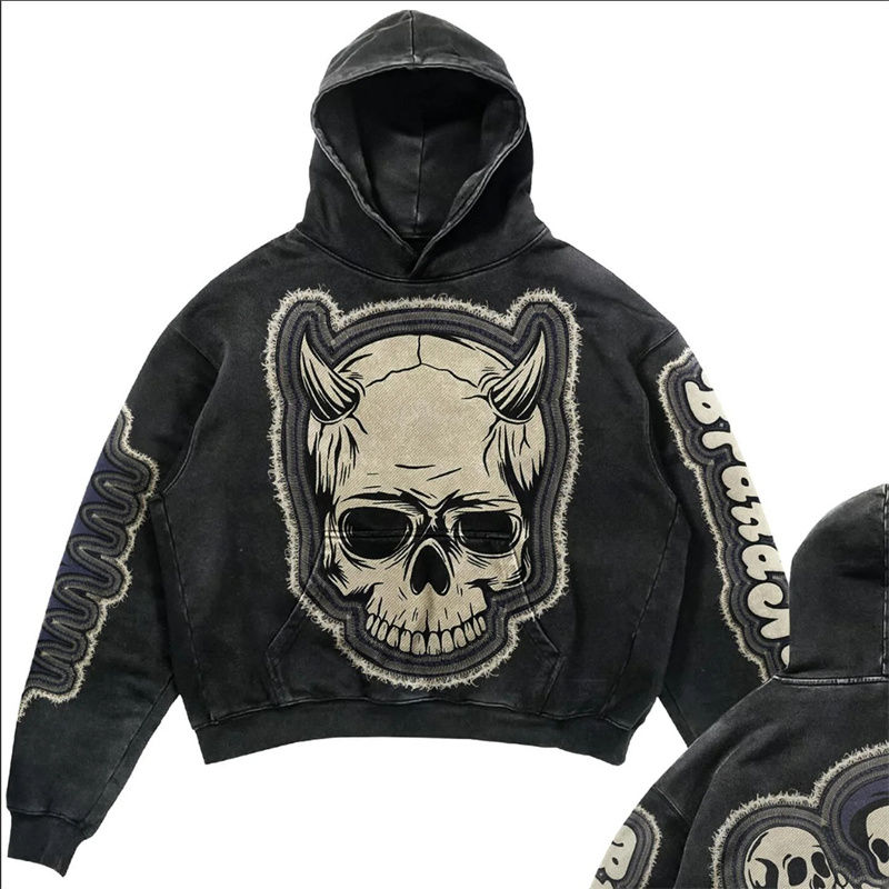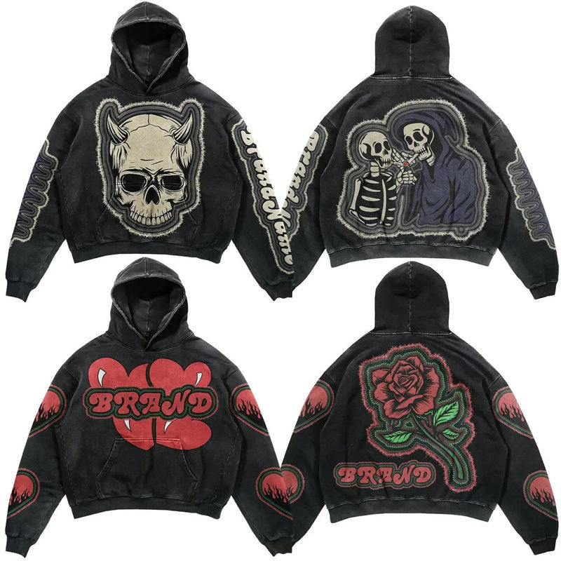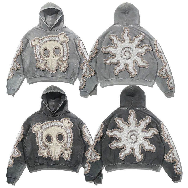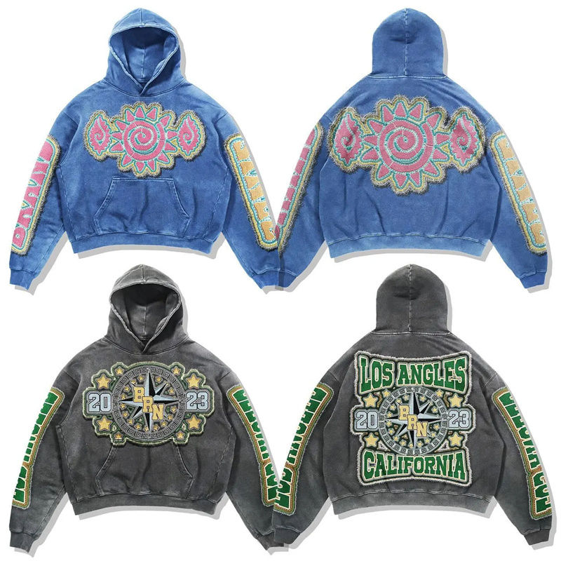 Sudaderas con Capucha de Algodón Lavado al Ácido, Personalizadas, de Alta Calidad, Cortas, de Gran Gramaje, Estilo Vintage, con Bordado Desgastado