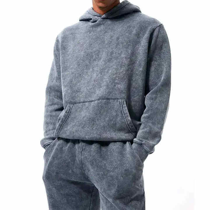 Conjunto de chándales de dos piezas de alta calidad con lavado ácido para hombre, conjunto de sudaderas con capucha de gran tamaño personalizadas de invierno de lana de algodón pesado para hombre