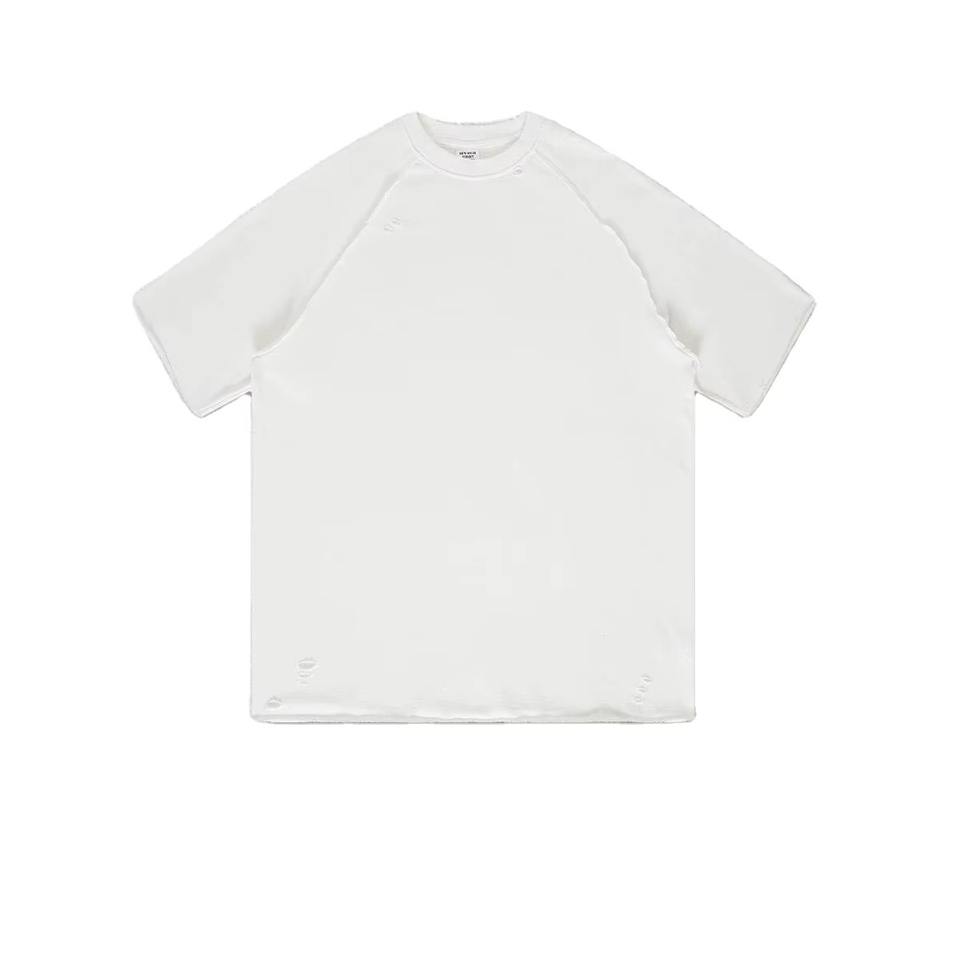 Camisetas de manga raglán con lavado ácido para hombres, camiseta Vintage de peso pesado con dobladillo rasgado y puños de borde crudo, camisetas para hombres