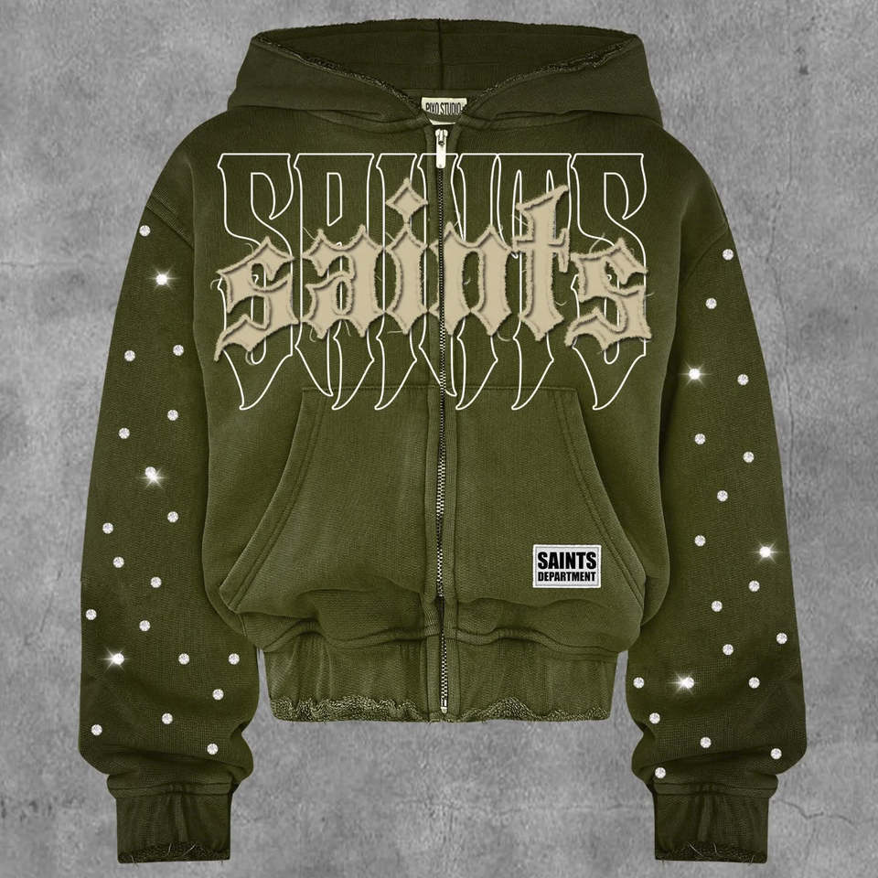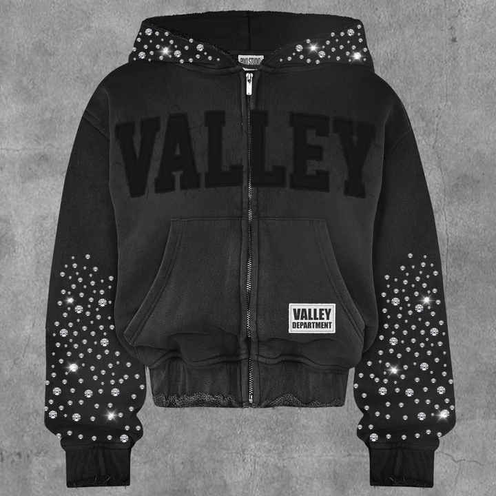 Sudadera con capucha de diamantes de imitación de lavado ácido Unisex ropa de calle de gran tamaño Grunge desgastado Y2K moda Hip Hop Casual sudadera de moda