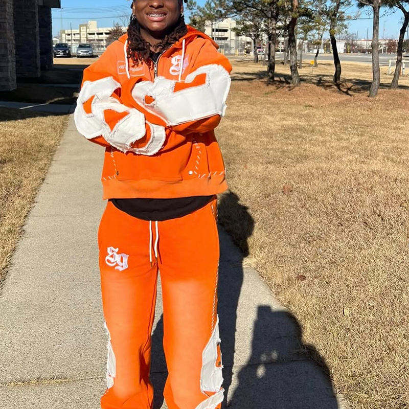 Conjunto de Chándal con Pedrería y Lavado Ácido: Sudadera con Capucha y Pantalones Acampanados, Ropa Urbana Personalizada