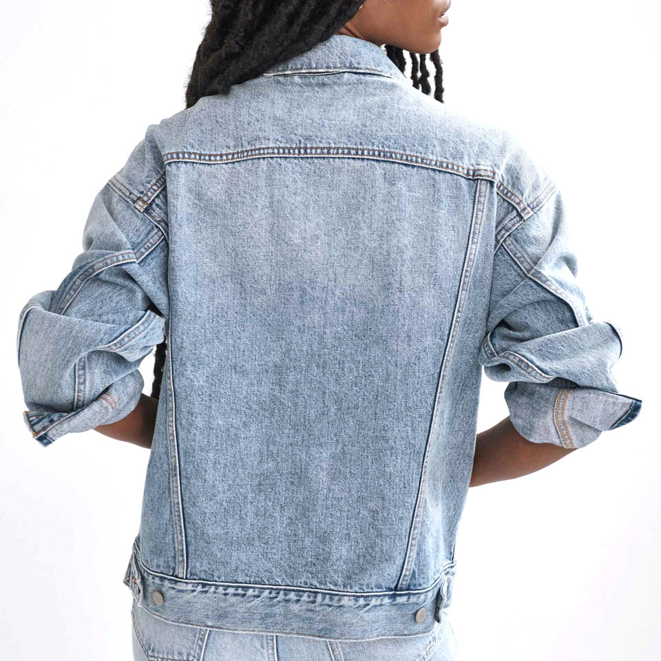 Chaquetas vaqueras 2025 personalizadas lavadas con ácido para mujer, chaqueta vaquera de moda, chaqueta occidental de gran tamaño con botones y bolsillos