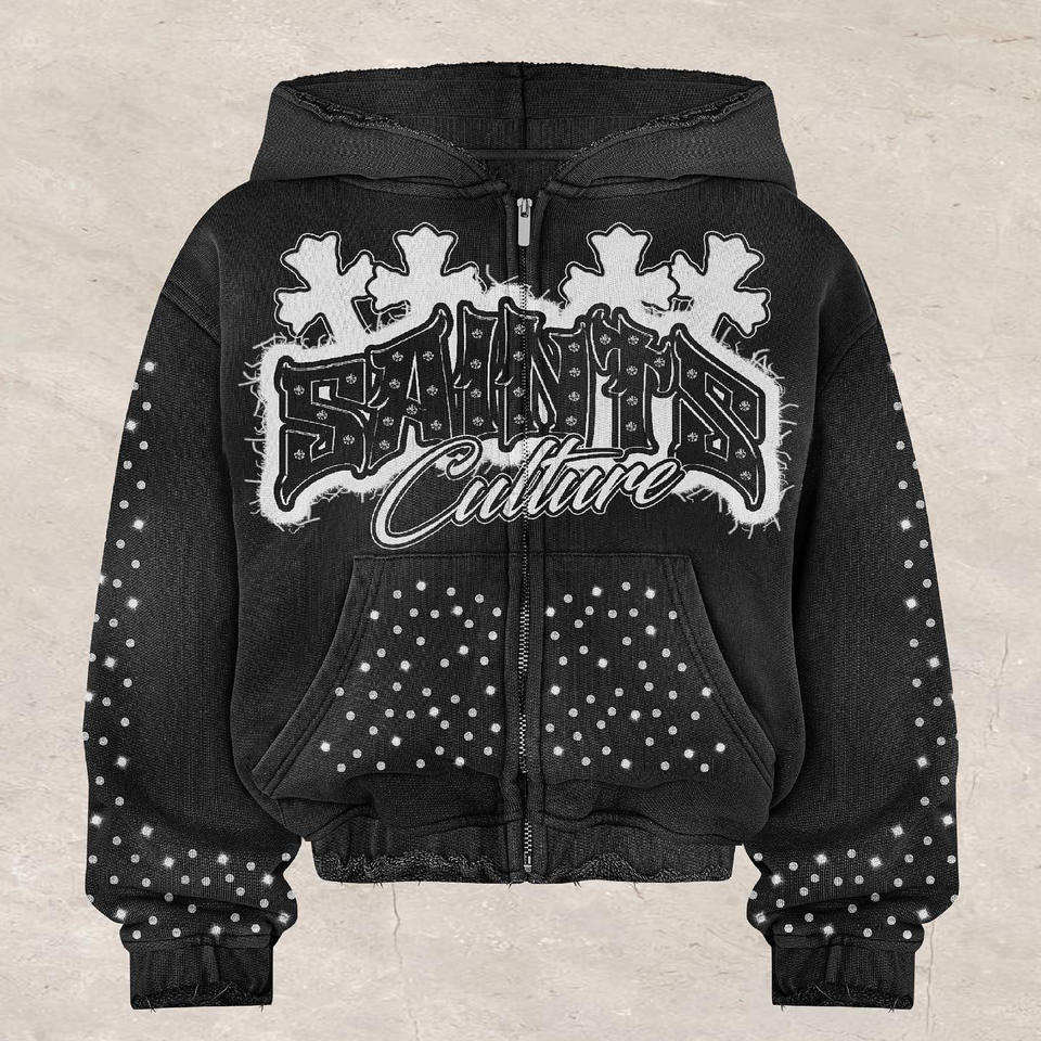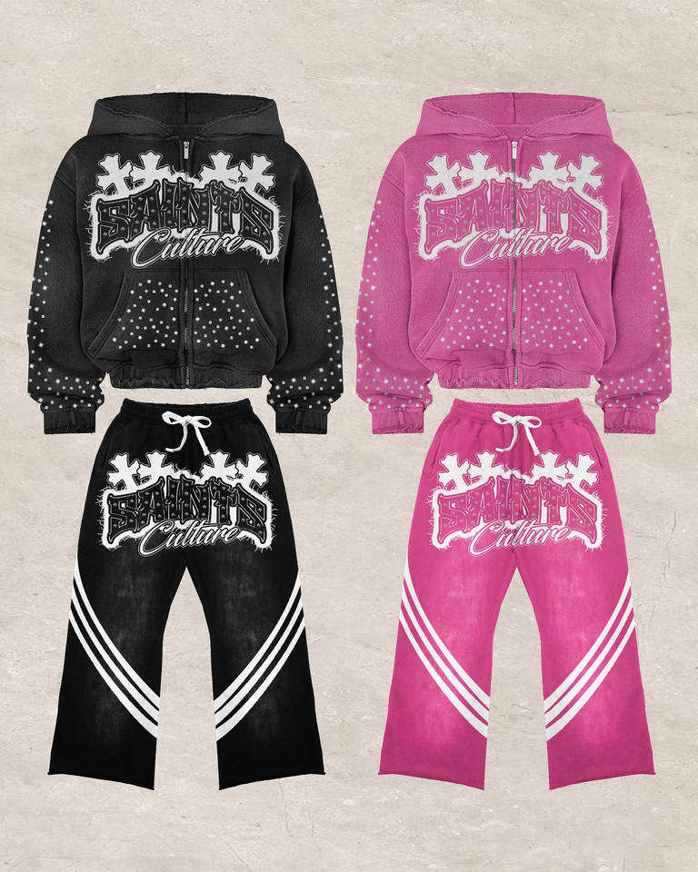 Conjunto Deportivo Vintage Personalizado con Lavado Ácido para Hombre, Sudadera con Capucha y Pantalones Holgados, 100% Algodón Tejido, Bordado con Pedrería, Venta al Por Mayor
