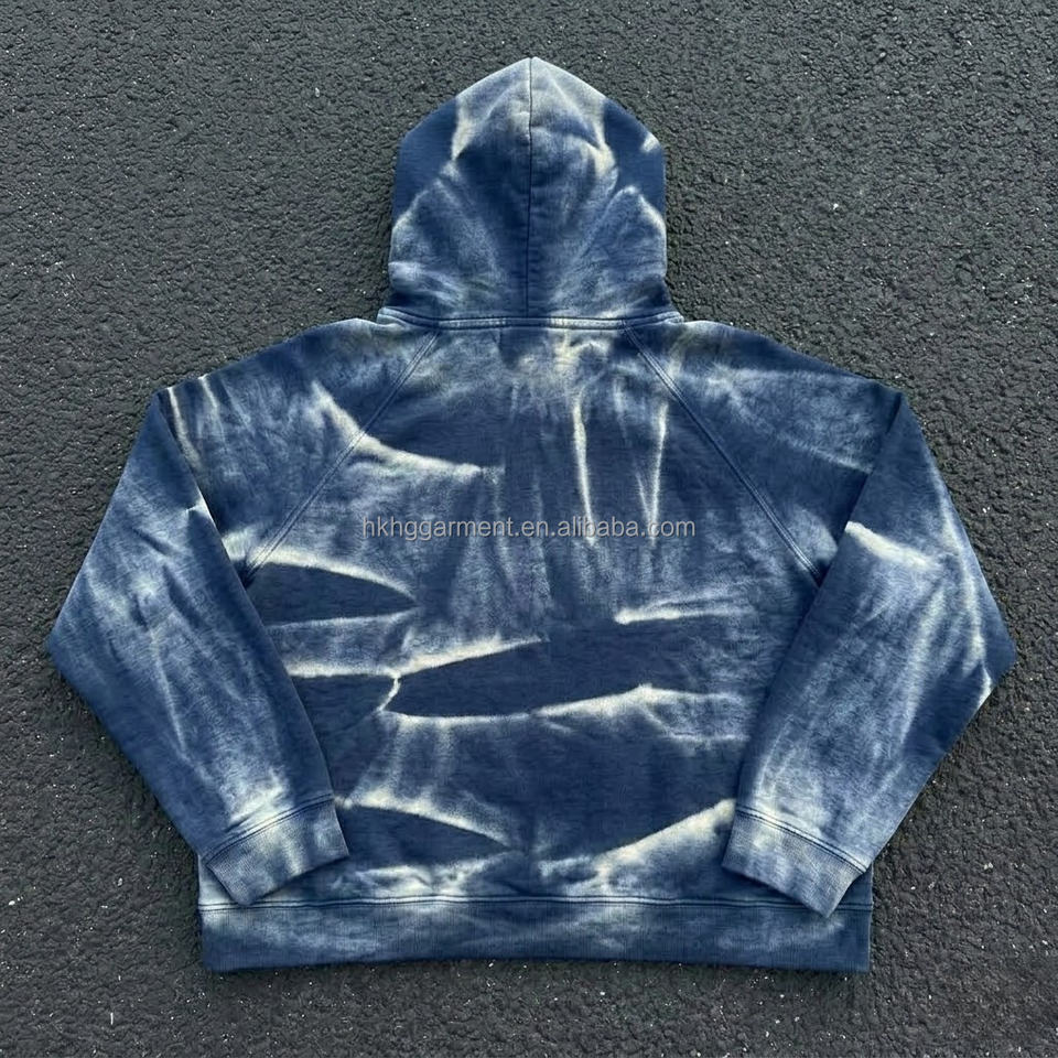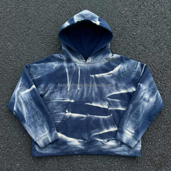 Sudadera con capucha oversize de cuello redondo para hombre, estilo retro, con bloques de color, efecto desgastado, estilo grunge, con dobladillo deshilachado y lavado ácido.