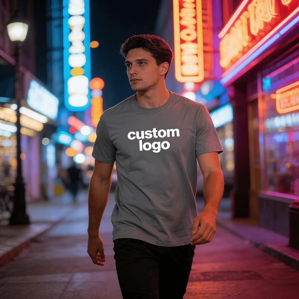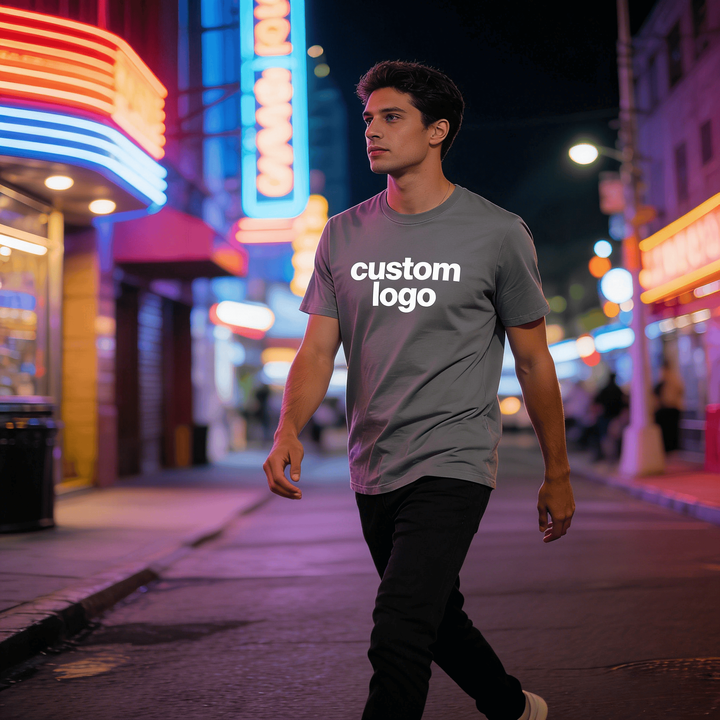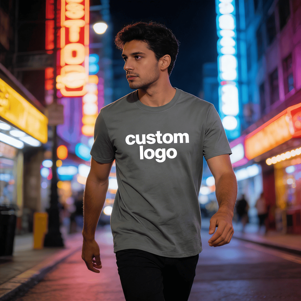 Camiseta de estilo urbano para hombre, 100% algodón, tejido de punto, 250g, transpirable, con estampado serigrafiado y lavado ácido, con logo frontal.