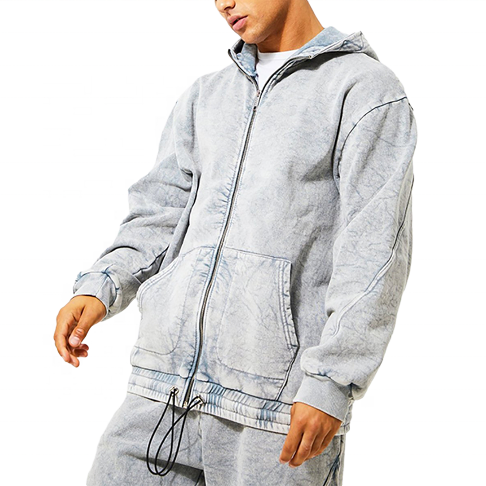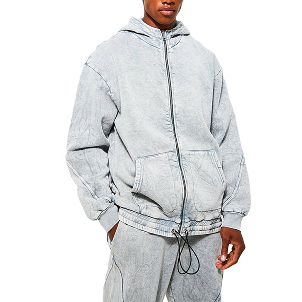 Conjunto Deportivo de Felpa Lavada al Ácido, Personalizado, 100% Algodón, Pantalones Deportivos Anchos y Sudadera con Capucha para Hombre