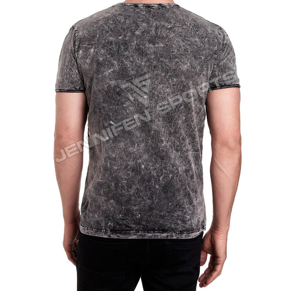 Camiseta lavada con ácido Tela de Jersey de algodón 100% de alta calidad, cuello redondo, impresión digital personalizada, etiqueta de cuello interior