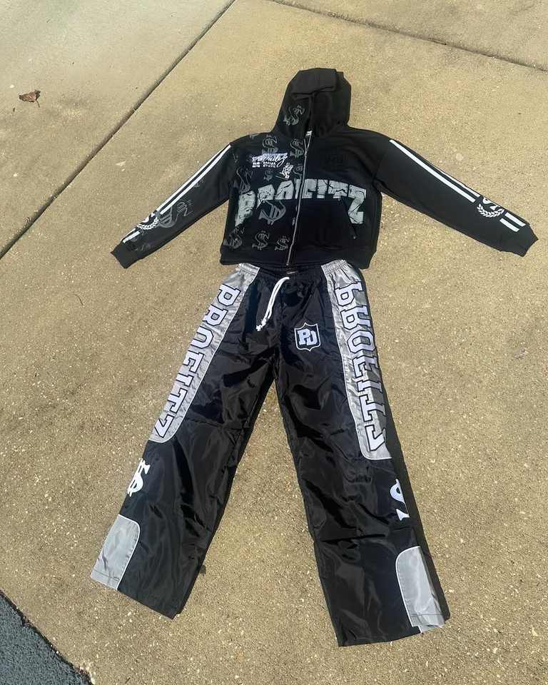 Chándal lavado con ácido para hombre Estilo acampanado Ropa personalizada Serigrafía Pantalones de chándal apilados Chándales