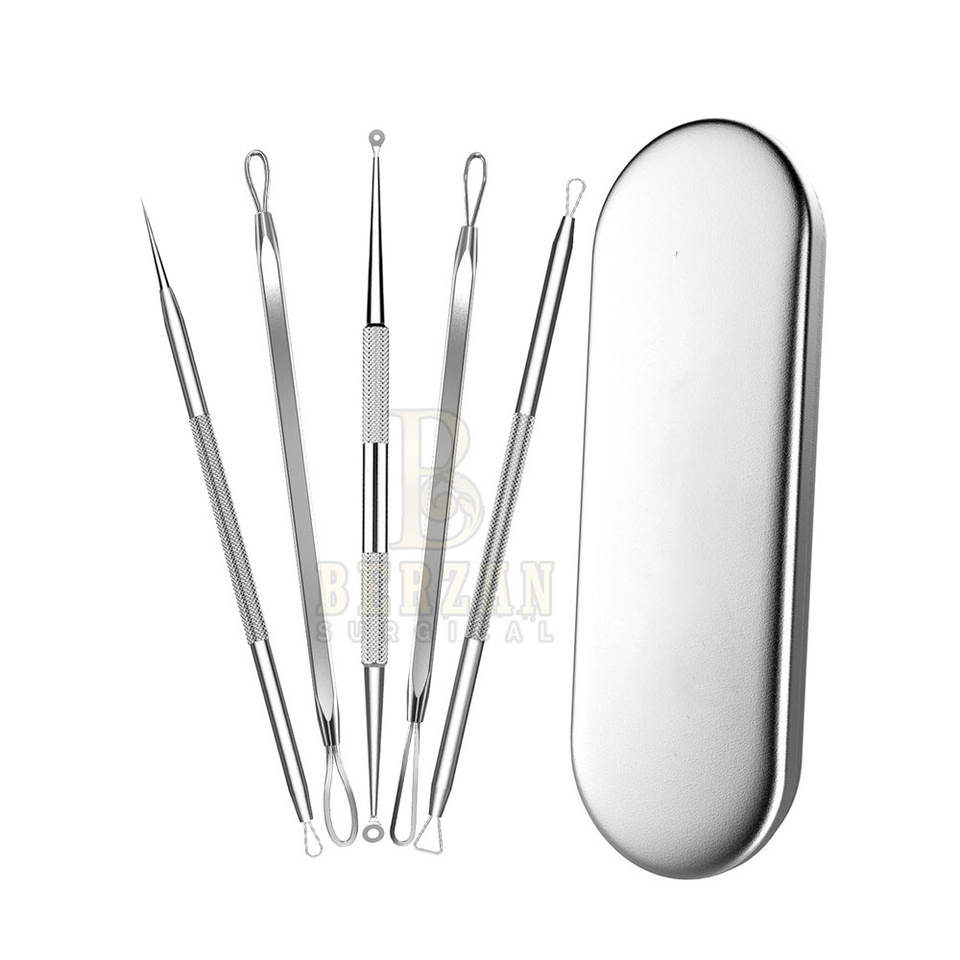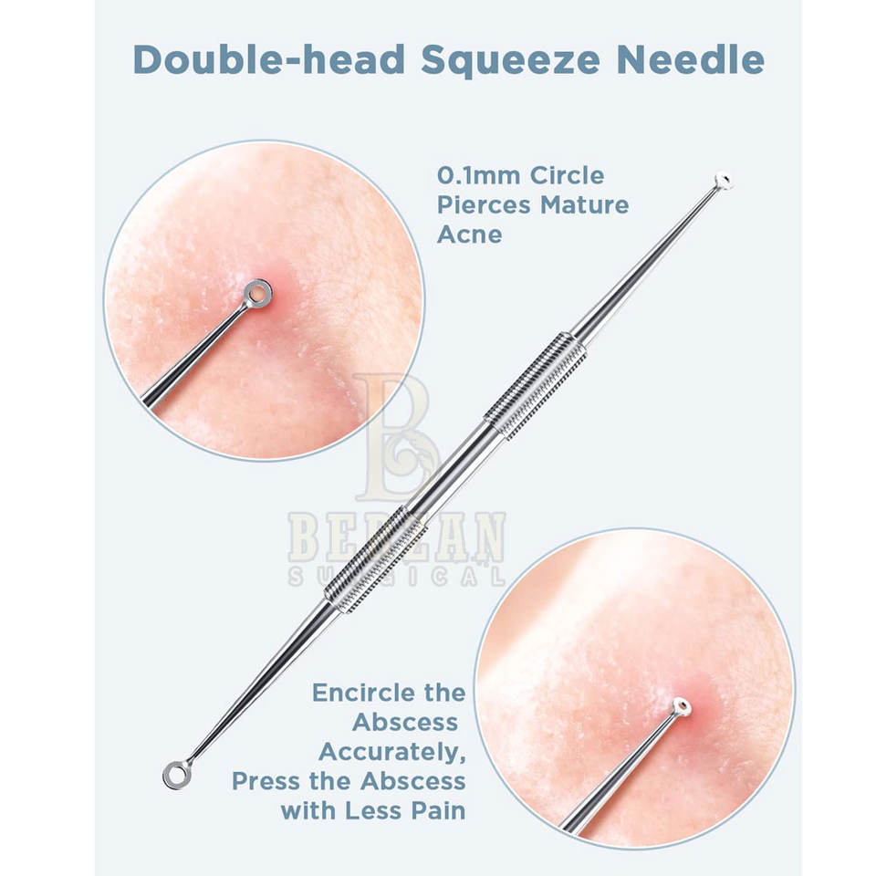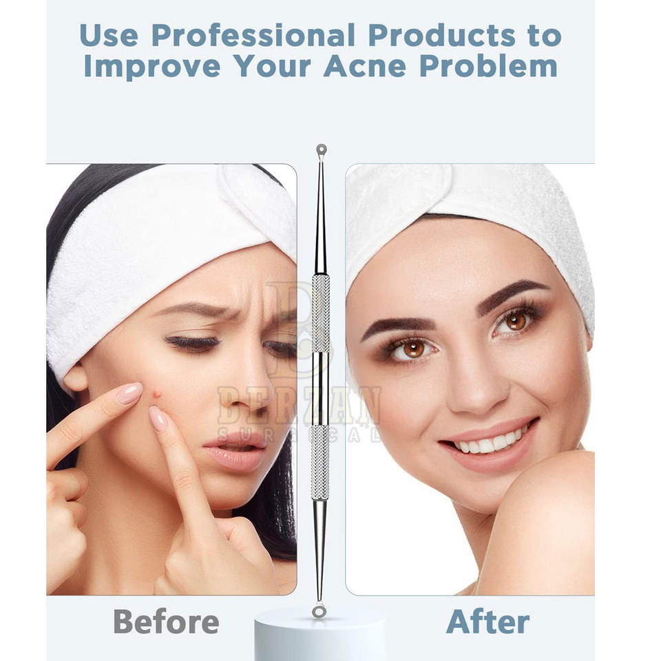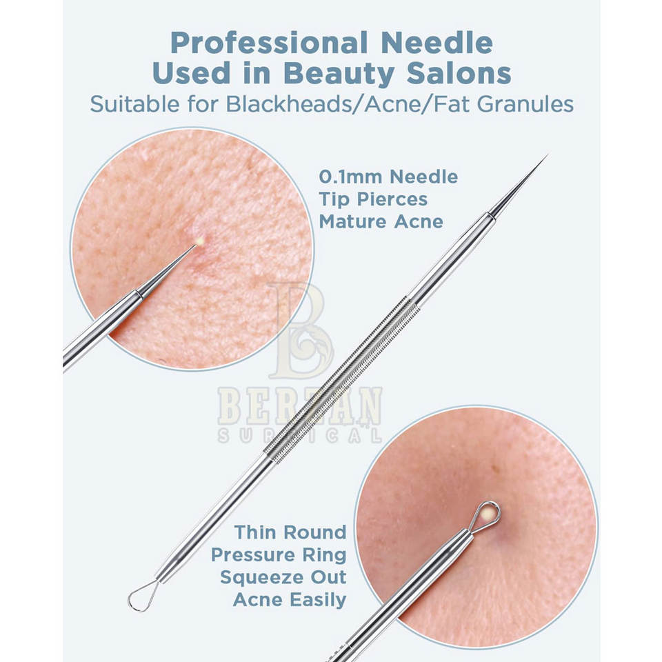 BERZAN SURGICAL Extractor de espinillas de acné sin riesgos Espejo de acero inoxidable Acabado satinado opaco Cuidado reutilizable Belleza Cuidado personal