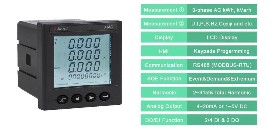 Acrel-Medidor de potencia de panel inteligente de CA trifásico, recolección y control de electricidad, registro de eventos SEO DI/DO