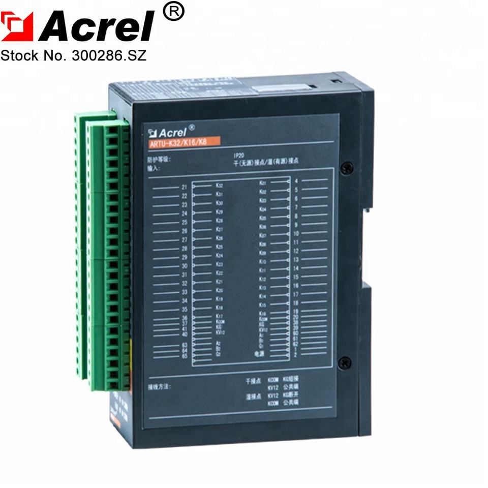 Unidad de terminal remota de la serie Acrel ARTU, Unidad de TERMINAL REMOTA de circuito múltiple, Riel Din, recoge 32 señales de interruptor con RS485 en la parte de abajo de la línea