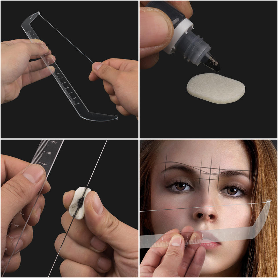 Regla de posicionamiento de cejas acrílicas, herramienta de medición de mapeo de tatuaje de cejas, delineadores de teñido de hilo, maquillaje permanente, modelado de cejas