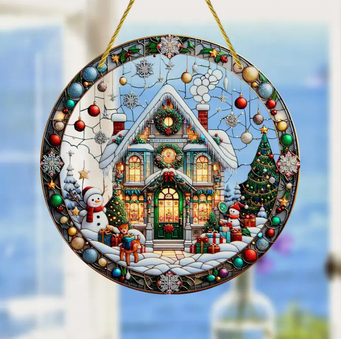 Acrílico adornos navideños colgante Sun Catcher para el hogar jardín al aire libre decoración de ventana hecha a mano