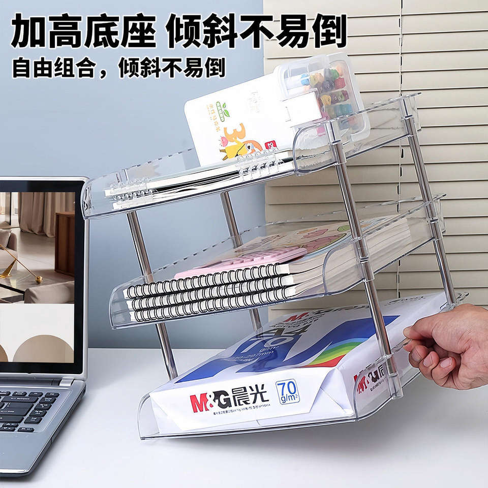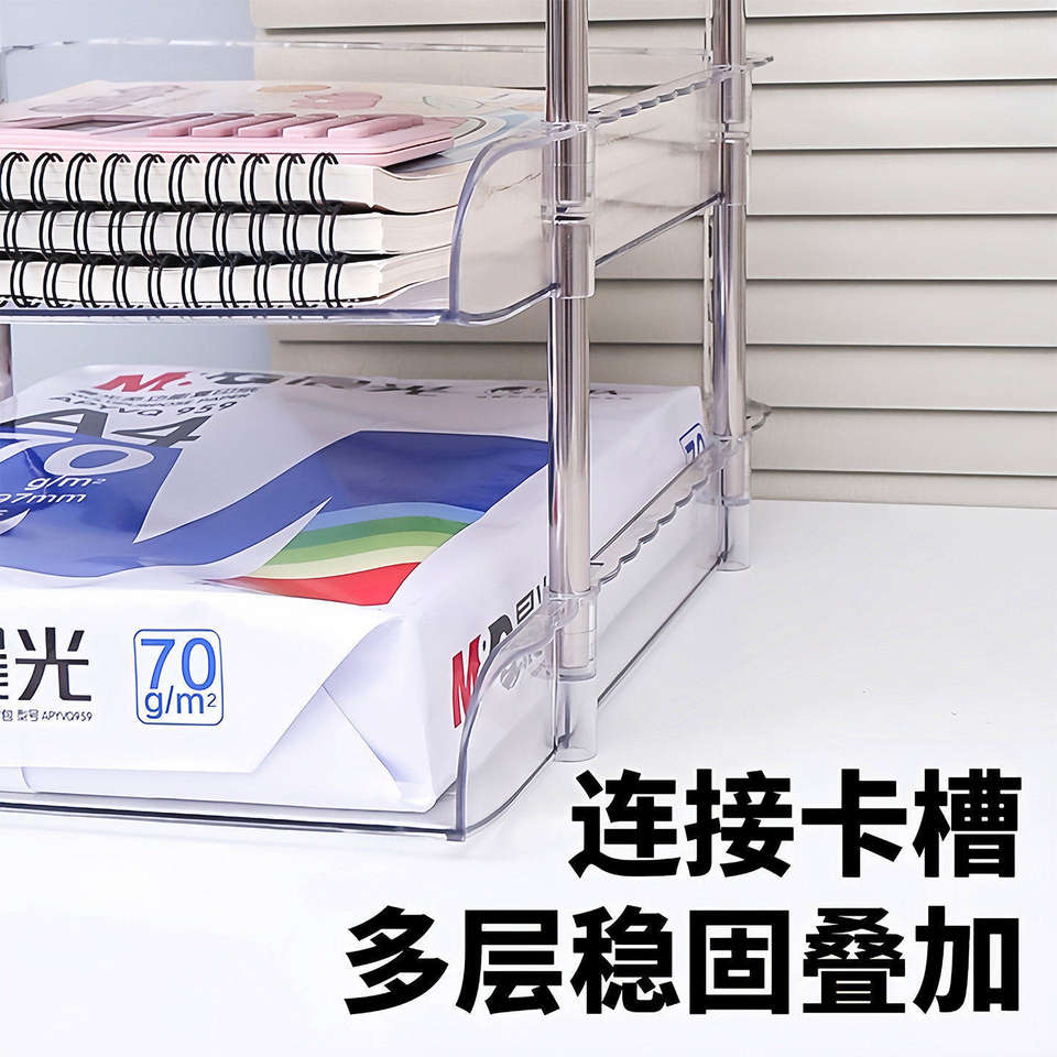 Estantería de escritorio acrílica de 4 niveles, organizador de almacenamiento resistente para oficina, estudio, libros, estantería escalonada para escritorio